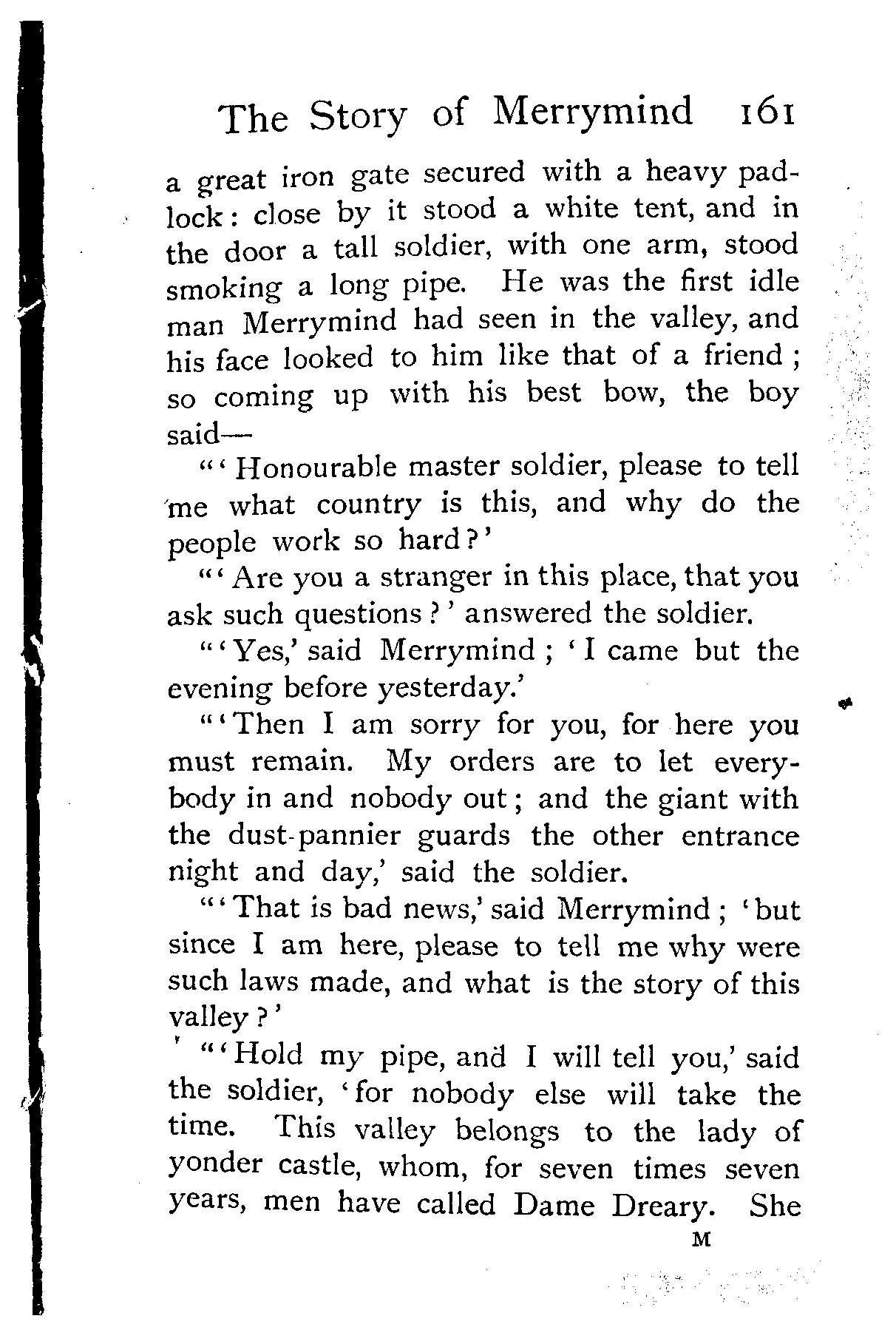 "'That is bad news,' said Merrymind; 'but since I am here, please to tell me why were such laws made, and what is the story of this valley?'