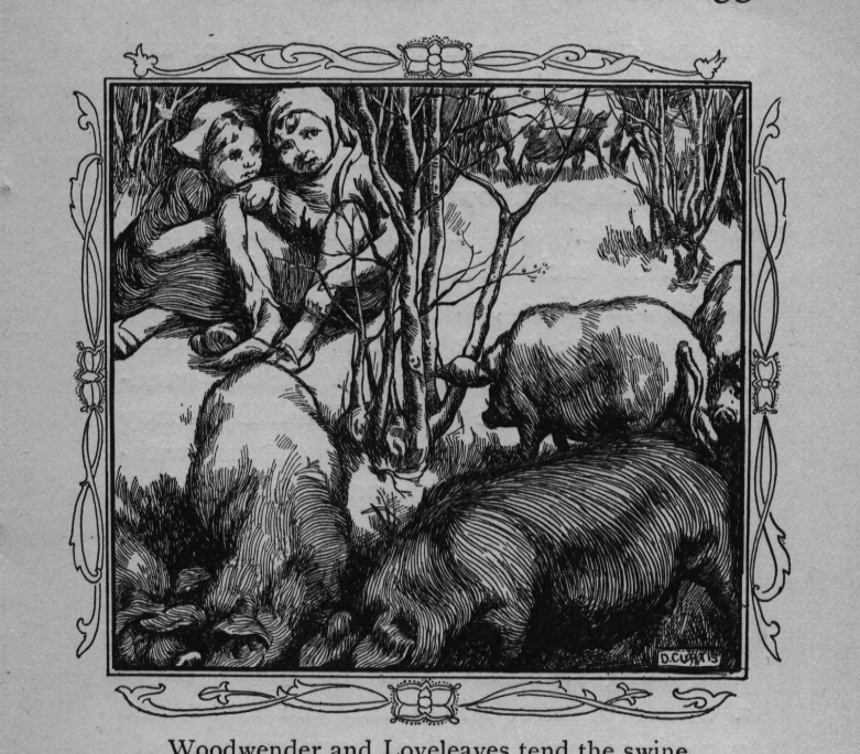 "Merchants and dealers of all sorts crowded to that fair from far and near. There was nothing known in the north country that could not be bought or sold in it, and neither old nor young were willing to go home without a fairing. The poor man who owned this large family could afford them little to spend in such ways; but as the fair happened only once in seven years, he would not show a poor spirit. Therefore, calling them about him, he opened the leathern bag in which his savings were stored, and gave every one of the thirteen a silver penny.