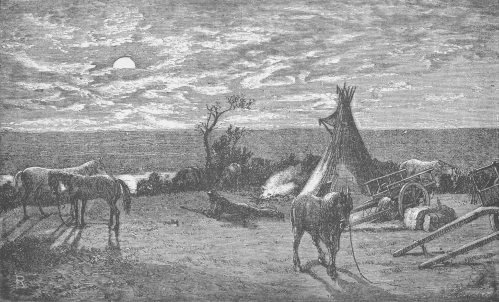 My friends, this seems to me to be a very hard day, and we have come upon very difficult times. This war did not spring up[Pg 148] here in our land; this war was brought upon us by the children of the Great Father who came to take our land from us without price, and who, in our land, do a great many evil things. We have a store-house to hold our provisions the Great Father sends us, but he sends very little provisions to put in our store-house. When our people become displeased with their provisions and have gone north to hunt in order that they might live, the Great Father's children are fighting them. It has been our wish to live in our country peaceably, but the Great Father has filled it with soldiers who think only of our death. It seems to me there is a better way than this. When people come to trouble, it is better for both parties to come together without arms and talk it over and find some peaceful way to settle it. My friends, you have come to me to-day, and mentioned two countries to me. One of them I know of old—the Missouri River. It is not possible for me to go there. When I was there before we had a great deal of trouble. I left also 100 of my people buried there. The other country you have mentioned is one I have never seen since I was born, but I agree to go and look at it. When men have a difficult business to settle it is not possible it should be well settled in one day; it takes at least twelve months to consider it.