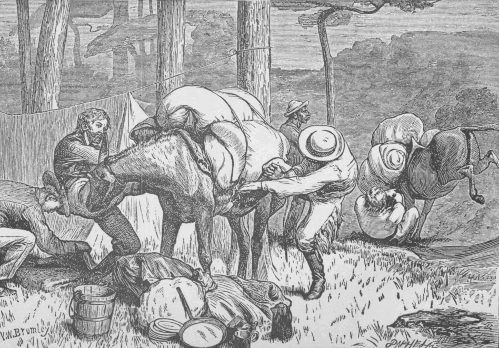 After the business immediately incident to their arrival had been dispatched, then took place the regale of pork, flour, and spirits, which was sure to end in a carouse, during which blackened eyes and broken noses were not at all uncommon; but though blood was made to flow, life was never put seriously in peril, and the belligerent parties were the best of friends when the fracas was ended.