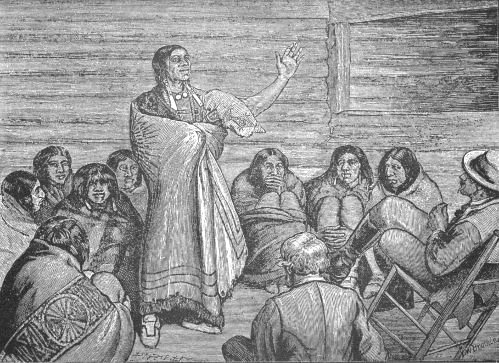 Wamamsa:—The Lord above rules everything, and he has given us a nice mild day for our council. We have prayed for land and churches, and as we now have three churches I think the Lord has taken good care of us and has answered our prayers. Look at these young men. You have not seen any Indians during your travels dressed in that way. We are not getting along very well—not as well as we should. Twice now we have had Quakers for agents, and we are going down hill all the time; getting into the ground.