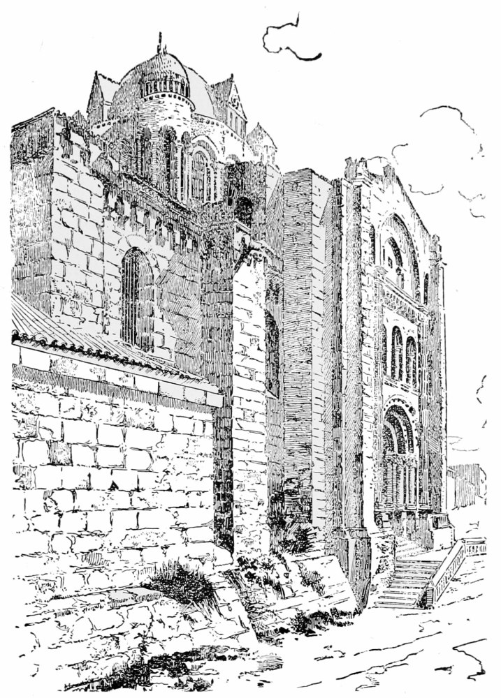 The hour to enter the cathedral is at the Ave Maria, when the sun is low and its rays tremble on the burnished walls in irises of gold, and the great painted windows stand out in a pale light, alive with venerable forms of law-givers, prophets, and kings; the delicate curves of the arches melt into dim lines, and rays of yellow light pierce like arrows across the floor.