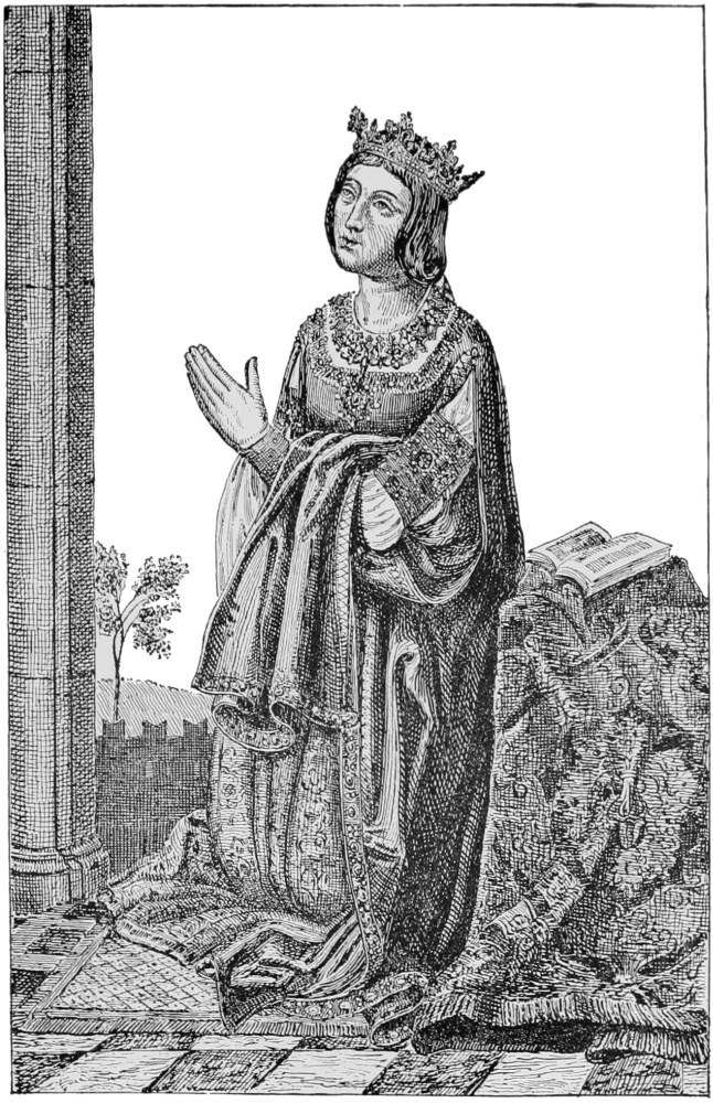 For years he had been her confessor, and to her death remained her devoted friend. Raising herself{344} on her couch with difficulty, Isabel kissed the jewel which he wore in his episcopal ring, then sank back exhausted on the embroidered pillows at her back.