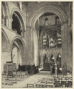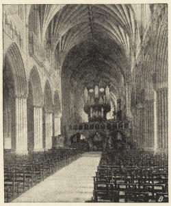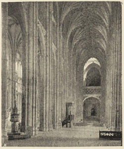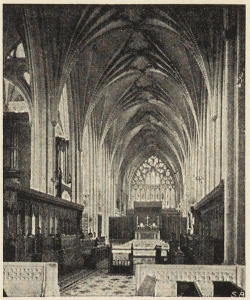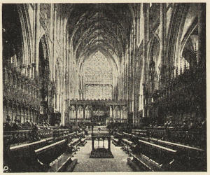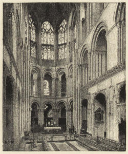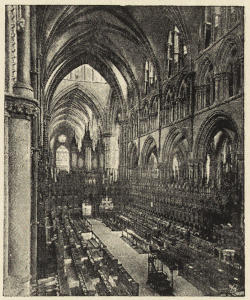 The western limb of the cathedral is called the nave. The term “choir” is sometimes loosely applied to the whole of the eastern limb. Strictly it applies just to that part of the church where the stalls are; and that part, as in St. Alban’s and Norwich, need not necessarily be in the eastern limb at all, but in the crossing and in the easternmost bays of the nave.