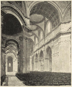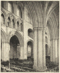 Add to these causes the frequent collapses due to mediæval jerry-building, both Norman and Gothic. Many central towers collapsed—e.g., at Winchester, Ripon, Wells, Ely, Peterborough, Lincoln; and doubtless there were collapses of many others, of which we have no record. Hence, for example, the fourteenth-century choir of Ely. Whole sections of a cathedral tumbled down—e.g., in St. Alban’s nave. The early masonry was but skin-deep; inside the thin casing of masonry the core of piers and walls alike had crumbled into powder; foundations were insufficient, or were simply omitted. The object was, but too often, not to build soundly, but to build a bigger church than the rival over the way, and to hurry it up as quickly as possible. Hence the shocking building done by the Peterborough people in their rivalry with Ely.