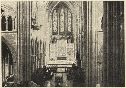 But it is not sufficient to study the different parts of a cathedral in chronological order. It would be a dull biography of a man, and a dull history of a people, which put events correctly in chronological order, but did not point out the causal connection between them. It is just when we reach this point that the real interest begins. It does not interest one much to hear that an acquaintance whom we saw in London in the spring is now in the Australian bush: it does interest one when one hears that he had to leave the country because three months ago he was detected cheating at cards. So, in a cathedral, it is not enough to know that such a vault was put up or such a row of windows inserted in the fifteenth century. We want to know why the cathedral people constructed the vault or the windows just then; also, why they were[vii] not satisfied with what was there before; also, what was there before. And with the latter query comes in a fine field of action for what I believe is called the “constructive imagination.”