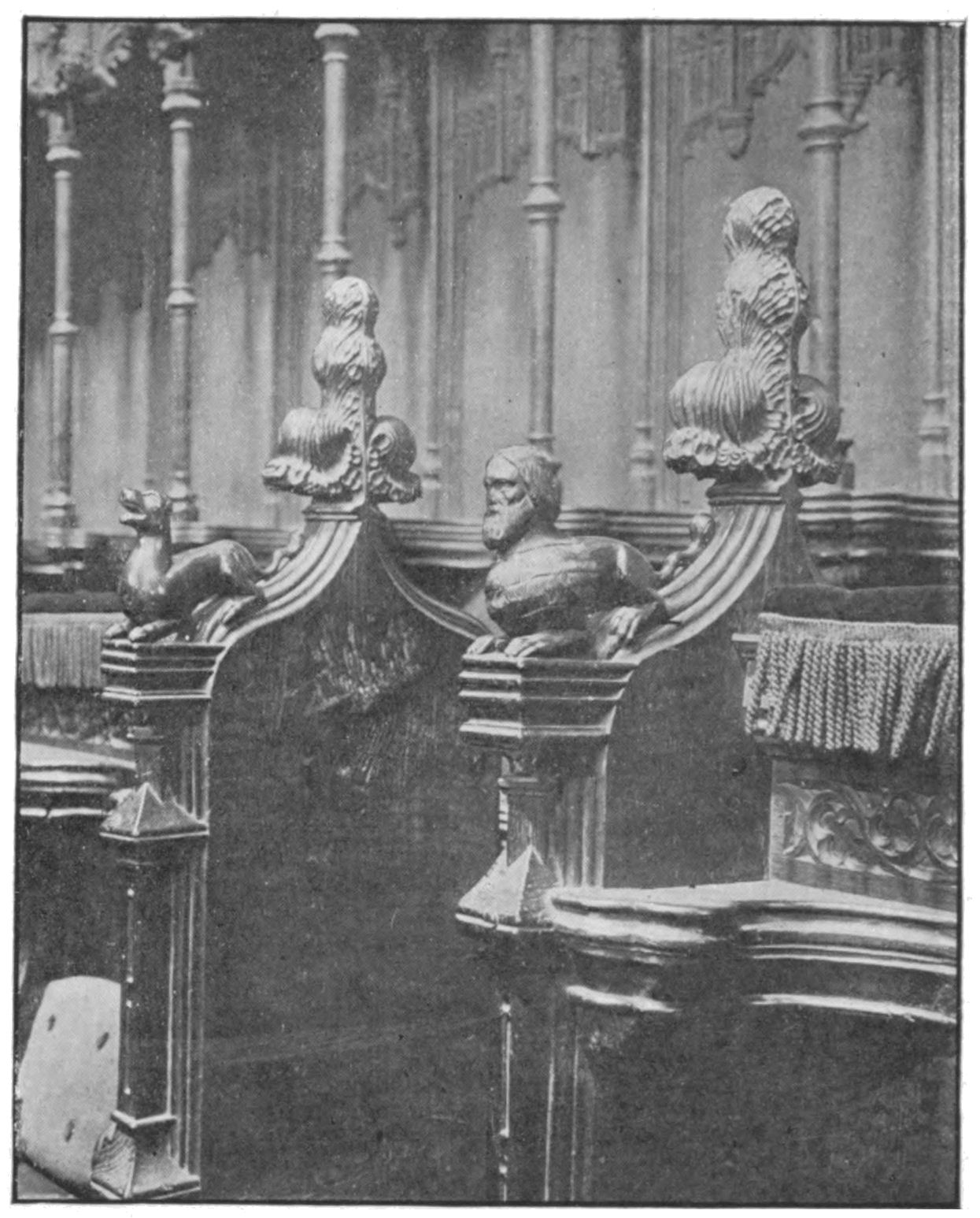 [34] For information relating to the Windsor stalls I am indebted to Mr W. H. St John Hope: see his paper "On a remarkable series of Wooden Busts surmounting the stall-canopies in St George's chapel, Windsor," in Archæologia, liv. 115, and the building accounts to be published in his forthcoming work on Windsor Castle.