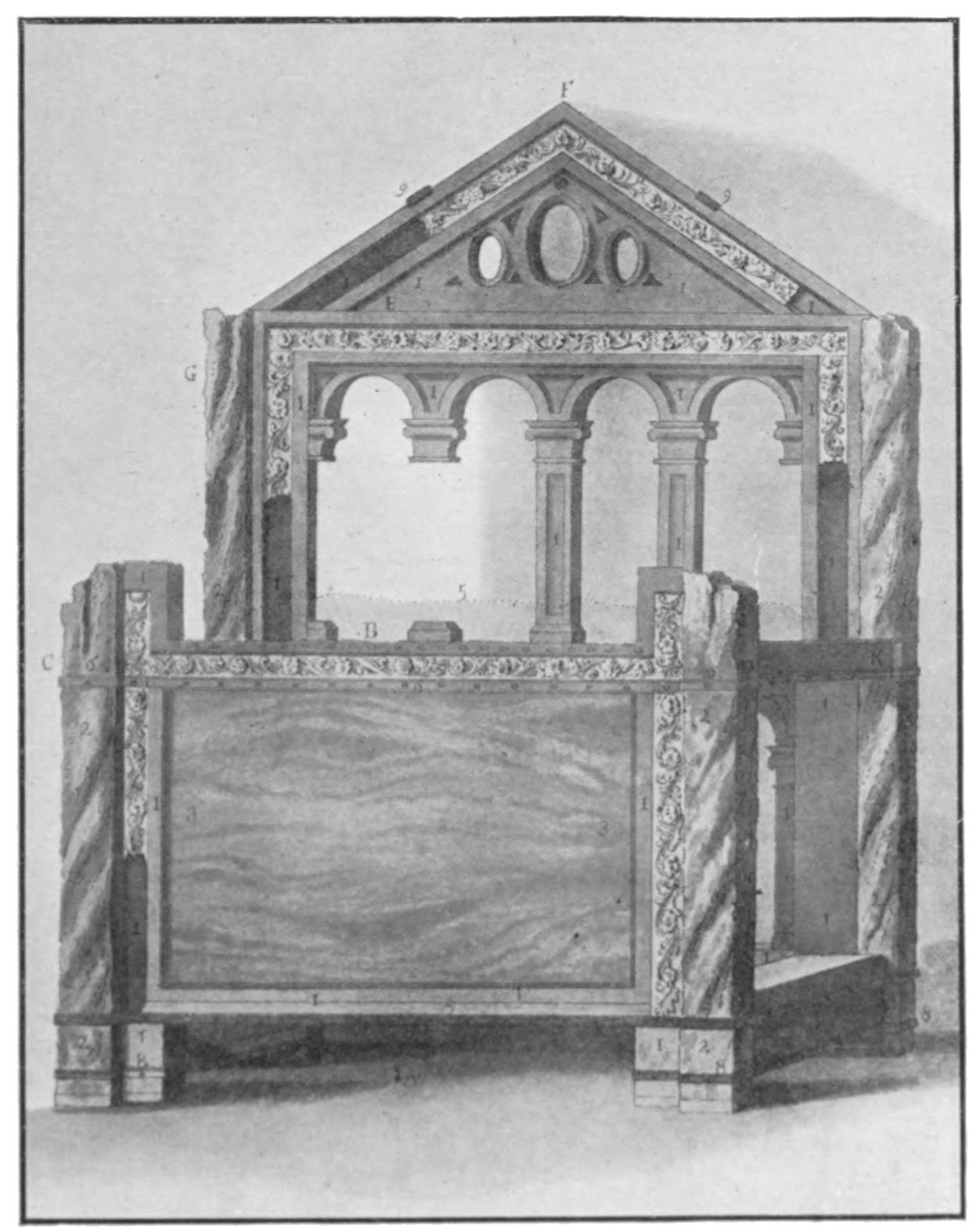 [66] Padre Garrucci in Proceedings of Society of Antiquaries, iv. 40, and illustrations in Vetusta Monumenta, vol. vi. The perspective sketch is by Carlo Fontana and is in the Royal Library at Windsor; the measured drawing is by Signor S. A. Scardonelli, and was made in 1784.