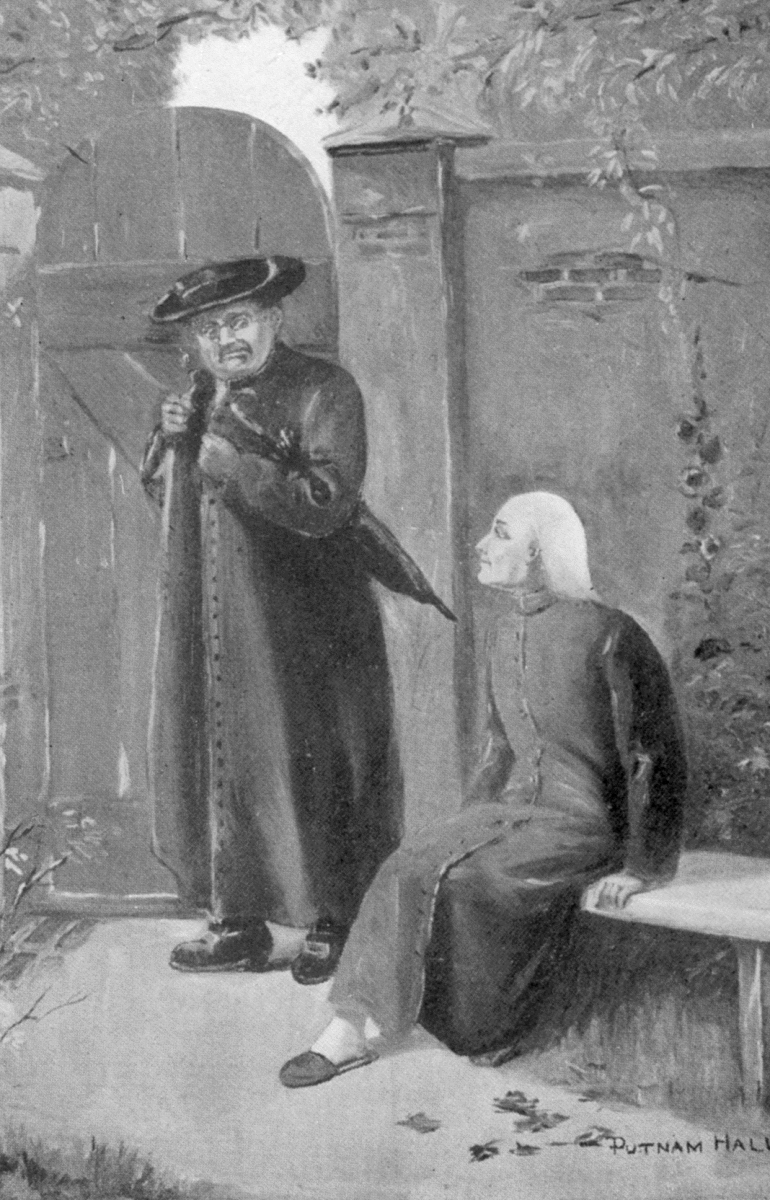 The priest looked at his few books and lovingly touched some of his favorites. His reading chair was near. His eyes filled as he looked at it, with the familiar breviary on its wide arm. The crucified Christ gazed down from His cross at him and seemed to smile; but the priest's eyes swam with tears, and a great sob burst from him. He opened the door, but lingered on the threshold. When he passed out on the street his walk was slow, his lips moving, as he went along with the step of a man very weary and bending beneath the weight of a Great Something.