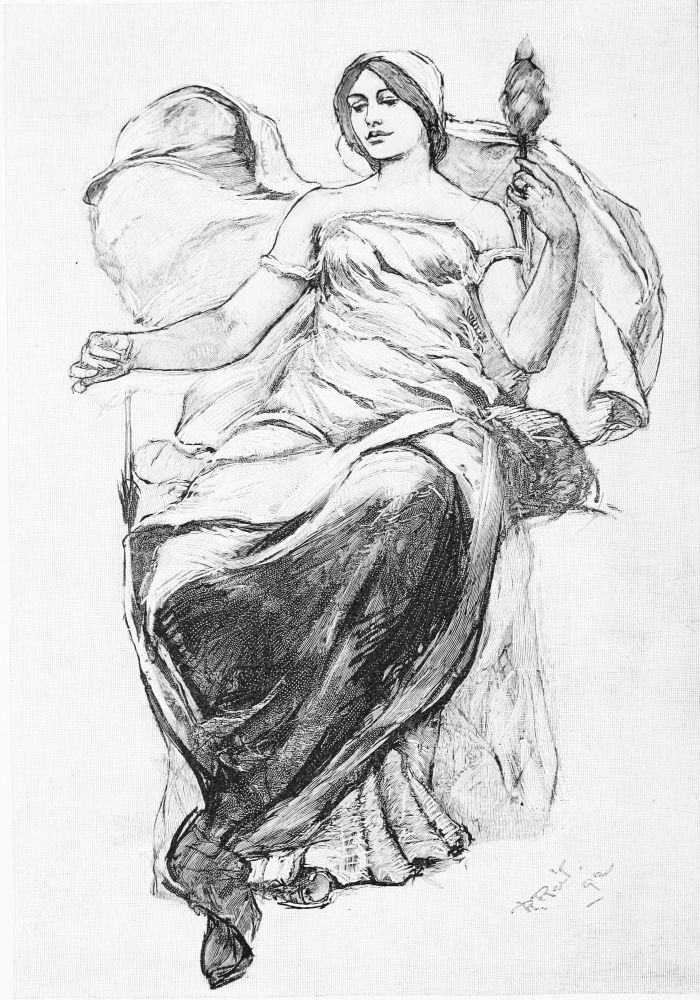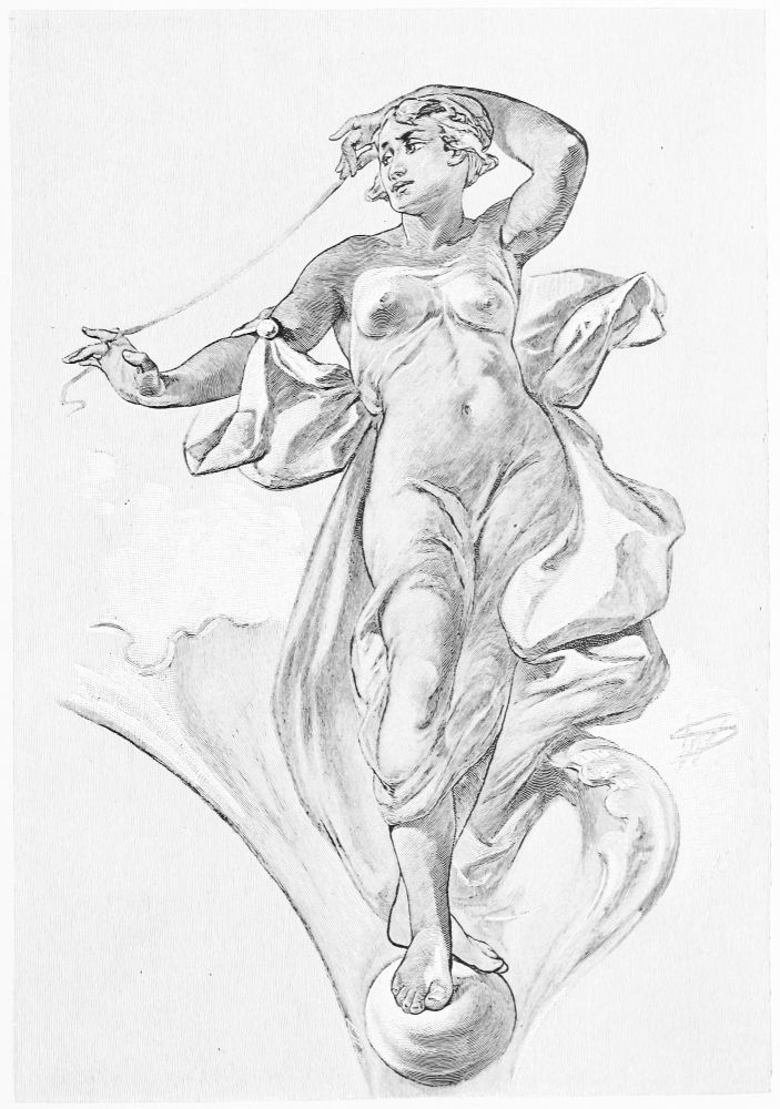 The figure on page 29 is taken from a sketch of one of Mr. C. S. Reinhart’s figures in the south dome of the West Portal, and was materially changed in the enlargement, and improved in action and accessories. The effort of the artist has been to bring all the separate tones into harmony with each other, making the design and color appropriate{33}