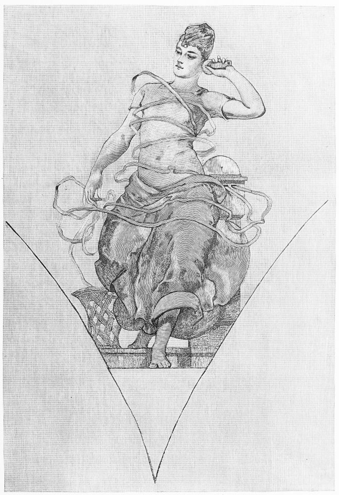 ALLEGORICAL FIGURE OF “NEEDLE-WORK,” BY J. ALDEN WEIR, IN ONE OF THE DOMES OF THE MANUFACTURES BUILDING.