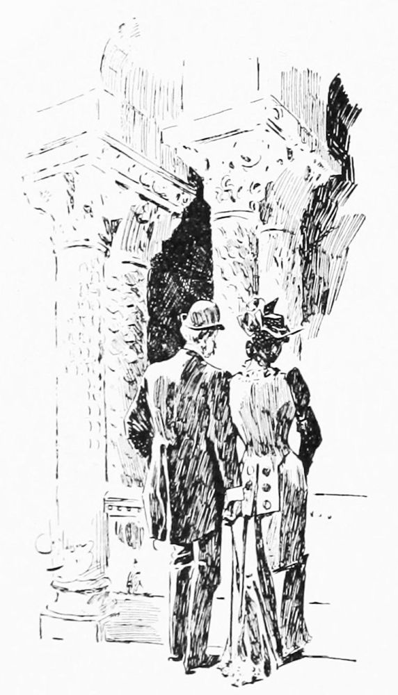 An unlooked-for feature of the exhibition is the profusion of newly married couples. Whether all this individual ecstasy adds gayety or mournfulness to the Fair depends, of course, entirely upon the point of view from which the victims are regarded. It is evident that many happy grooms have considered this a chance to kill two birds with one stone, and, as far as one can judge results from outward appearances, there is no question as to the practical working of the scheme. The happy couple find themselves in a sort of fairy land, wandering about among countless strangers, whose very{53} numbers seem to lend security and to harden the over-sensitive soul. The crowd also seems to create a feeling of isolation which the innermost recesses of a virgin forest could never supply. Moreover, there is here so much else to occupy the attention of the usually obnoxious public that the bride and groom can hold hands with absolute security and be as bold or blushing as their temperaments may demand.