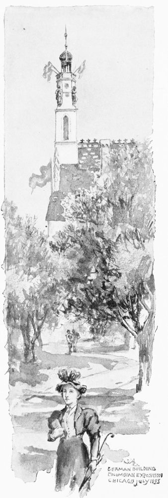 Rousing myself from these reveries, I bid Espero good-by, join the throng, follow through the gates and so out upon this broad highway, the Plaisance. My dreams are all true. Along the crowded thoroughfare move half the wild tribes of the earth—Javanese, Esquimaux, natives of the Soudan, Bedouins from beyond the Great Desert, Algerians, Arabs, Greeks, Armenians, Syrians, and Turks. Fringing each edge of this gay promenade I find the huts of the Javanese and Soudanese, the tents of the Bedouins and Arabs, and the more pretentious booths and structures of the Algerians and kindred people. Here, too, are the quaint gateways and open squares of old German and Austrian towns; the low-roofed, deftly constructed houses of the Japanese; the intricate carvings of India covering the booths, and, draping the doors of the Eastern bazaars the rich stuffs, rugs, and tapestries of the Orient.