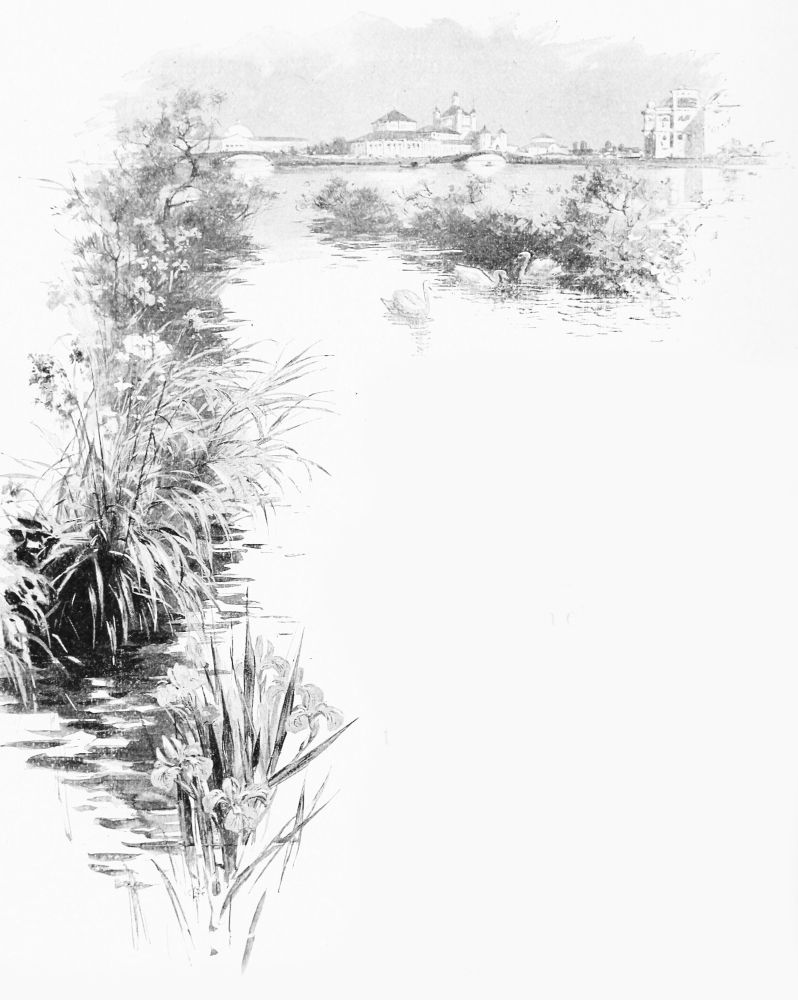 But it is not alone in these picturesque settings of lawn and garden which everywhere abound throughout the grounds that we find our fullest appreciation of the landscape art. In the spell of these imposing structures, towering above the revetement walls on each side as we traverse the lagoon, we had utterly ignored another feature of its banks, or perhaps had our attention only momentarily inveigled thither by the invitation of the bevy of snowy ducks or geese or graceful swans hastening from our prow, and gliding beneath the overhanging boughs of feathery gray willows. Here indeed is a haven for a tired soul, a fairy realm whose modest charms are apt to be overlooked in the claims of the overwhelming architectural surroundings. But sooner or later its restful refuge will be discovered and welcomed. How many a foot-sore mortal, weary from the very excess of enthusiasm, will seek this quiet retirement, content for the moment to consign the architect to the accessory place of vista and horizon, while he roams and pries and muses among the labyrinthian paths, fragrant bowers, and{86} shadowy glades, and along the reedy flowery borders of this sylvan fairy island, which the artistic genius of Olmsted and Codman has here, in two short years, conjured up like magic from the muddy, dreary marsh.