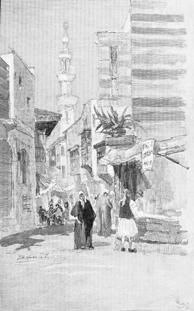 on the Plaisance, above which you catch the minaret of another mosque, overlooking “A Street in Cairo.” Later on you discover that this barefooted Arab drives a camel along this tortuous thoroughfare.