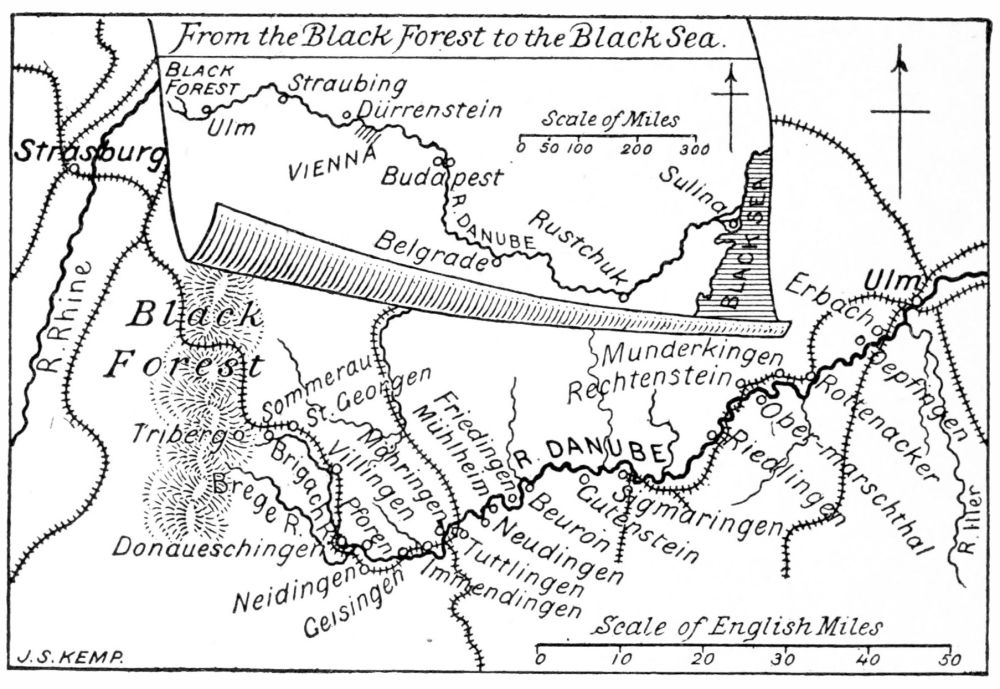 | The Black Forest—The Brigach and the Brege—The Highest Sources of the Danube—Journey thence from London—Villingen—Arrival at Donaueschingen—The Canoes and Outfit—Arbitrary Source of the Danube | Page I |