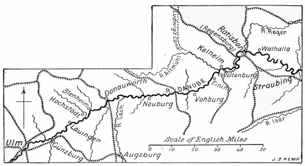 | Lauingen; Its Architecture and its People—Blenheim and Höchstädt—Donauwörth—Lumber-rafts and our Narrow Escape—Virtuous Vohburg—Roman Remains and one of the Scenes in the “Niebelungenlied”—Weltenburg Abbey—The Befreiungshalle and Kelheim—In {viii}Sight of Ratisbon | 46 |