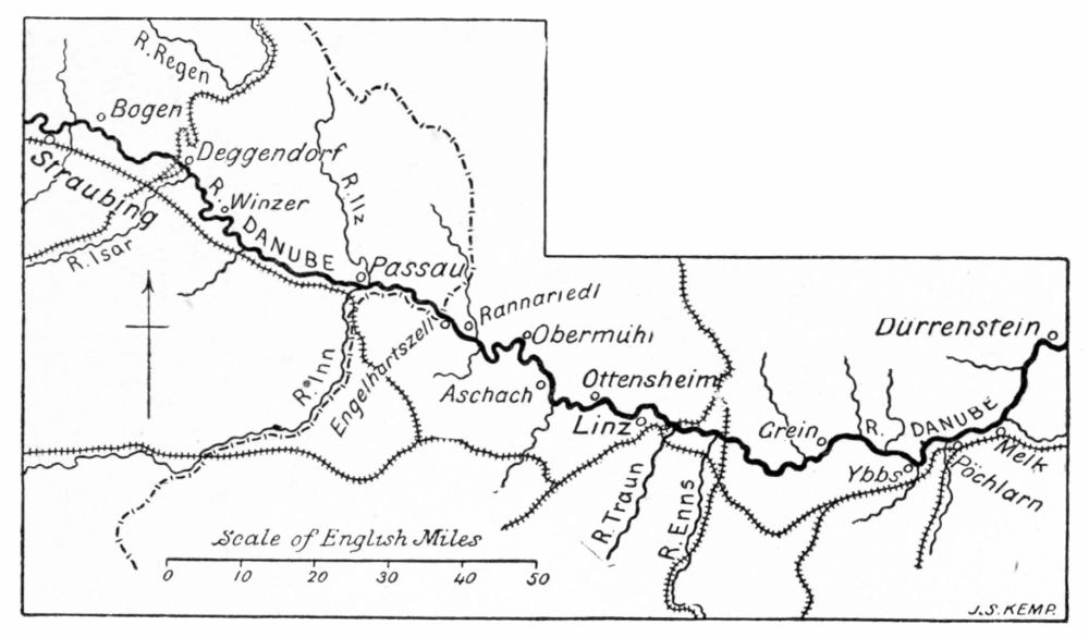 | Ratisbon; Its Architecture and its People—The Walhalla—The Plain of Straubing—A Summer Squall—A Typical Bavarian Farm-house—Visit to a Local Freight Flat-boat—Rowing Clubs at Deggendorf and at Winzer | 59 |
