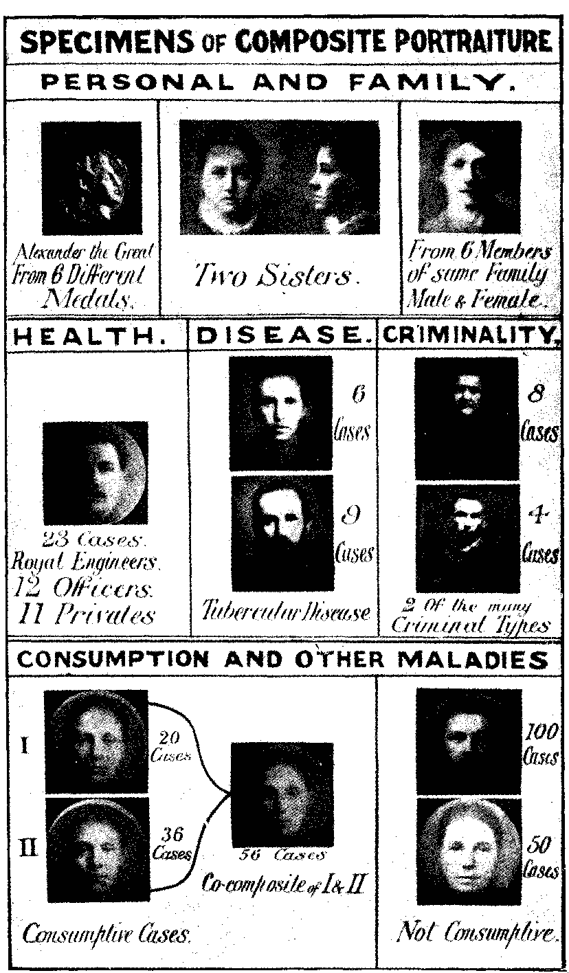 (See Appendix for three Memoirs describing successive stages of the method).--Object and principle of the process; description of the plate--composites of medals; of family portraits; of the two sexes and of various ages; of Royal Engineers; the latter gives a clue to one direction in which the English race might be improved; of criminals; of the consumptive; ethnological application of the process.