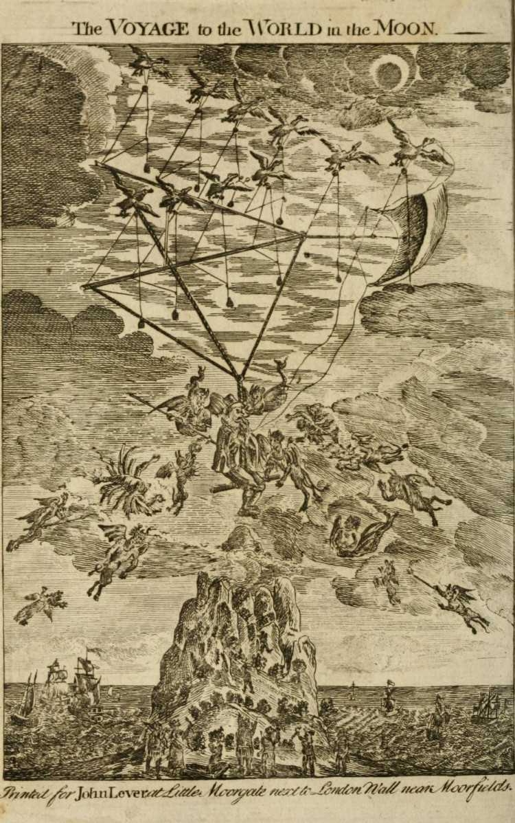 An Account of the Island of St. HELLENA; the Place where he resided some Years in, and where he planned this Wonderful Voyage; his entering on Board one of the Homeward-bound East-India Ships for Spain; their running on the Rocks near the Pike of Teneriff, to avoid an English Squadron of Ships, that were in Pursuit of the Spanish Fleet; Gonsales had just Time to fix his Machine, which carried him in Safety to the Pike of Teneriff, having rested his Gansas on the Mountain, whence was pursued by the Savages; when giving the Signal to his Birds, they arose in the Air with him for their Journey to the Moon: The wonderful Apparitions and Devils he met with in his Progress; their Temptations to him, which he avoided, and their supplying him with choice Provisions; his leaving this Hellish Crew, and proceeding on his Voyage to the Moon; his safe Arrival there; the Manners, Customs, and Language of the Emperors, Kings, Princes and People: His short Stay there, to the great Grief of the Lunars; the inestimable Presents in Jewels the Author received at his Departure; his repassing to our Earthly Globe again, and was set down in China by his Birds; his being taken for a Magician by the Country People, and preserved from their Fury by a Chinese Mandarin; his going aboard an India Ship bound to Europe; his safe Arrival in his own Country, where he made his Discoveries to the King of Spain, who held several Cabinet Councils to deliberate on a proper Use to be made of these Discoveries.