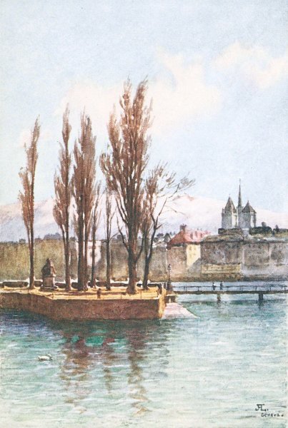 | 15. | The Statue of Jean Jacques Rousseau on the Island in the Rhone, Geneva, from Hôtel des Bergues. J. H. L. | 90x |
