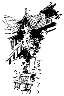 But don’t lose heart—keep on through the[8] gate, take a dozen steps into the court-yard and look about, and if you have any red corpuscles left in your veins you will get a thrill that will take your breath away. Spread out before you lies a flower-choked yard flanked about on three sides by a chain of moss-encrusted, red-tiled, seesaw roofs, all out of plumb. Below, snug under the eaves, runs a long go-as-you-please corridor, dodging into a dozen or more bedrooms. Below this again, as if tired out with the weight, staggers a basement from which peer out windows of stained glass protected by Spanish grills of polished iron, their leaded panes blinking in the sunshine, while in and out, up the door-jambs, over the lintels, along the rain-spouts, even to the top of the ridge-poles of the wavy, red-tiled roofs, thousands of blossoms and tangled vines are running riot.