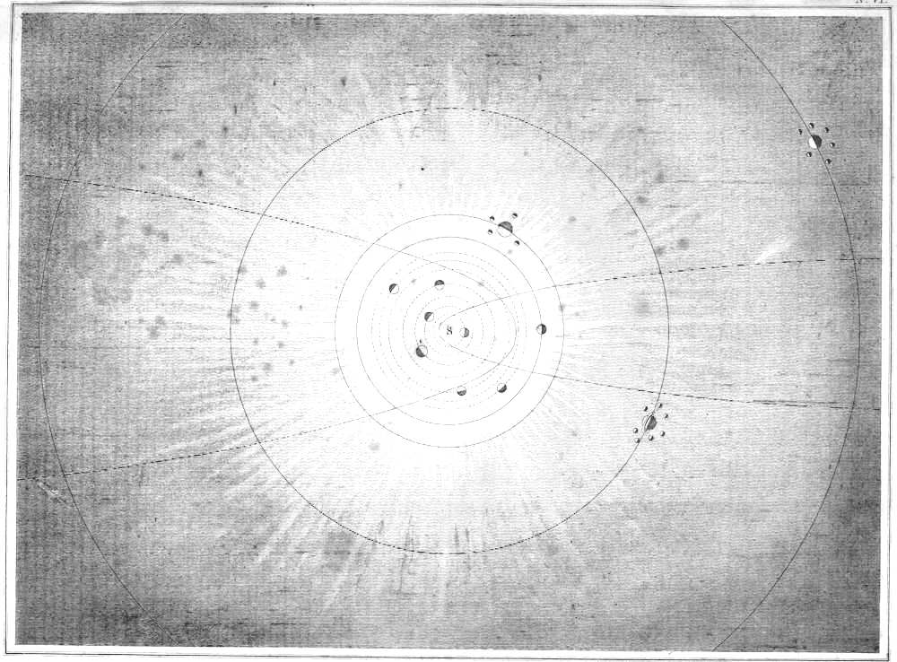 § 7. The Planets, Moons and Comets, together with the Sun around which they move, form what is called our Solar System. But what will you say, if you are told that each fixed Star in the firmament is a Sun which, like our’s, has its Planets and satellites and Comets; in short, that each fixed Star is the centre of a solar system, a thousand and more times larger than our own!! But how infinitely great must God’s Creation appear to us, when we reflect that all these globes, as well as our own, may be inhabited by reasonable beings!!!