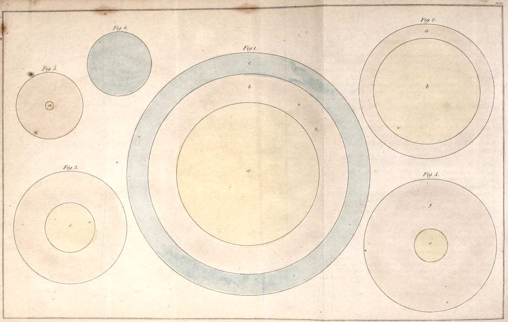 § 10. With regard to the magnitude of the different Planets it has been observed that although some of them are much larger than Our Earth; yet in Comparison to the Sun they are but small bodies, as you may see from the figures on plate No. III, in which the different Planets are drawn in proportion to the Sun: you will perceive from it;