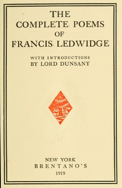 Writing amidst rather too much noise and squalor to do justice at all to the delicate rustic muse of Francis Ledwidge, I do not like to delay his book any longer, nor to fail in a promise long ago made to him to write this introduction. He has gone down in that vast maelstrom into which poets do well to adventure and from which their country might perhaps be wise to withhold them, but that is our Country's affair. He has left behind him verses of great beauty, simple rural lyrics that may be something of an anodyne for this stricken age. If ever an age needed beautiful little songs our age needs them; and I know few songs more peaceful and happy, or better suited to soothe the scars on the mind of those[Pg 18] who have looked on certain places, of which the prophecy in the gospels seems no more than an ominous hint when it speaks of the abomination of desolation.