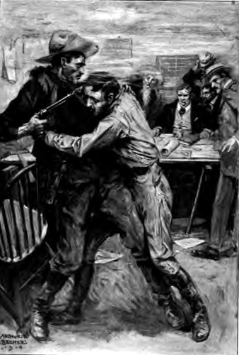 Massingale's pistol was dropping to the firing level when Brouillard flung away the telephone ear-piece and got between. Afterward there was a crash like a collision of worlds, a whirling, dancing medley of colored lights fading to gray and then to darkness, and the engineer went down with the avenger of wrongs tightly locked in his arms.