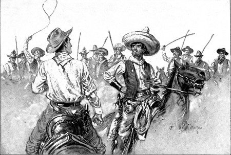 "Dat was one meestake, al-so; one ver' beeg meestake. I'll hire dat dam'-fool Carson to shoot da ditch. I t'ink you and da beeg h-Irishman take-a da trail and Carson keel you. Carson, he'll take-a da money, and make for leetle scheme to steal cattle. Som' day I keel heem for dat."