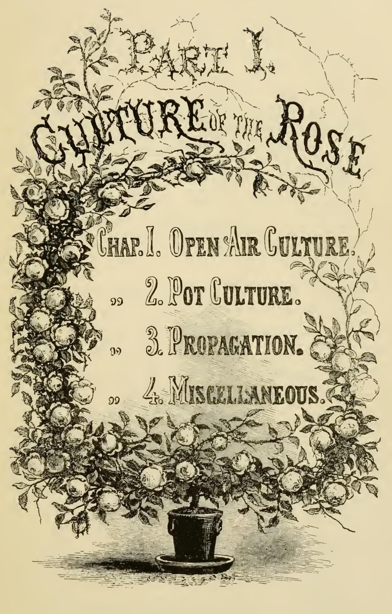 The object of this book is to convey information. The earlier portion will describe the various processes of culture, training, and propagation, both in the open ground and in pots; and this will be followed by an account of the various families and groups of the rose, with descriptions of the best varieties belonging to each. A descriptive list will be added of all the varieties, both of old roses and those most recently introduced, which are held in esteem by the experienced cultivators of the present day. The chapter relating to the classification of roses, their family relations, and the manner in which new races have arisen by combinations of two or more old ones, was suggested by the difficulties of the writer himself at an early period of his rose studies. The want of such explanations, in previous treatises, has left their readers in a state of lamentable perplexity on a subject which might easily have been made sufficiently clear.