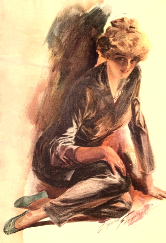 "It seems a crime," she said softly, and there was a little choke in her voice. She slipped to the soft-fibered rug before the fire. I gently brought my chair closer to her.