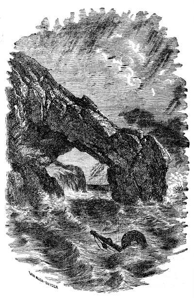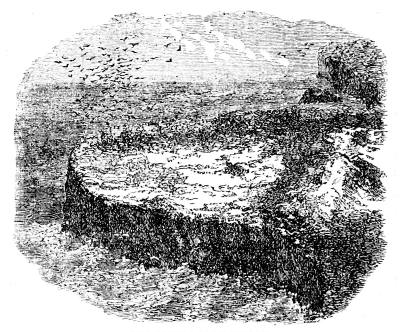 The force of the water in such positions is prodigious. Stephenson calculated that the sea dashed against the Bell Rock light-house with a force of 17 tons for every square yard. At breakwaters in exposed situations the sea has been known to seize blocks of stone weighing tons, and hurl them as a child would pebbles. At Cherbourg, in France, the heaviest cannon have been displaced; and at Barra Head, in the Hebrides, Stephenson states that a block of stone weighing 43 tons was driven by the breakers about two yards. At Plymouth, England, a vessel weighing 200 tons was thrown up on the top of the dike, and left there uninjured. At Dunkirk it has been found that from the dash of the breakers the ground trembles for more than a mile from the shore. Results of this kind, to which our attention is specially directed, since they affect man's work, show us what must be the effect produced by the sea, in constantly eating away the shore; altering the coast lines; changing continents, and building them up elsewhere; and suggest how much greater than what we see must have been the effects of the sea upon the land during the countless ages in which it has been at work.