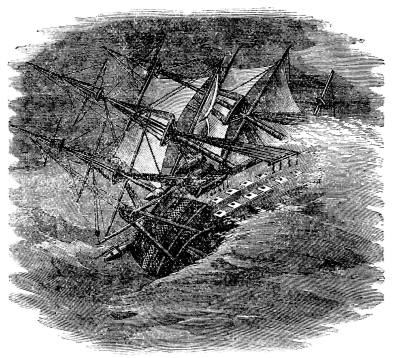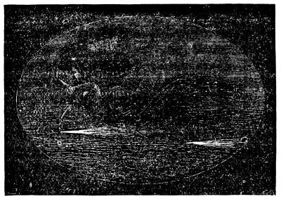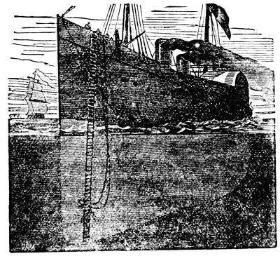 During our late civil war, while the harbor of Charleston, South Carolina, was blockaded by the ships of the national navy, and the bombardment of Fort Sumter continued, attempts were made by the besieged to destroy the blockading ships by torpedoes, which were to be fastened by a submarine craft. One of these boats, called a "cigar boat," though both ends were pointed, is thus described: She was thirty feet long and six feet broad, painted a lead color. Her propelling power consisted of a six-horse engine, geared to a shaft turning a propeller. At her bow was an iron bowsprit, so arranged that it could be lowered to the required depth, and at the end of this the torpedo was secured. When afloat only about fifteen feet of her length projected some fourteen inches above the water. For fuel she used anthracite coal, and attained a speed of about six miles an hour. Her tonnage was about seven or eight tons, and in this craft Lieutenant Glassells, of Virginia, volunteered to attack the iron-clad, the Ironsides, which was the most powerful ship at that time afloat in the navy, rated at from three to four thousand tons. The Ironsides was a very heavily armed ship, provided with eleven-inch guns, and capable of delivering the heaviest broadside ever fired from a single ship. On the night of the sixth of October, 1863, Lieutenant Glassells set out on his expedition from one of the wharves of Charleston. The sky was covered with clouds, and the night was very dark. His crew consisted of a fireman and a pilot, and his offensive armament of a torpedo, in position, and a double-barreled fowling-piece. Being asked why he carried a gun on such an expedition, he answered: "You know I have served in the United States navy, and I shall not attack my old comrades like an assassin. I shall hail and fire into them, with this, then let the torpedo do its work like an open and declared foe." This speech is a fair specimen of the singular mixture of honor and disloyalty which characterized the whole secession movement. This lieutenant could desert his navy, could take up arms against his country, but could not attack one of its ships without first giving its crew warning.