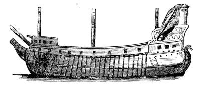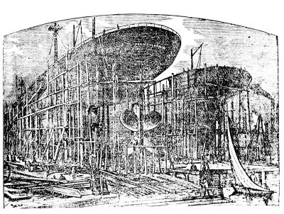 Though every school-boy, from his text-books on natural philosophy, can explain the reasons why a ship built of iron will float, yet our ancestors would have considered, a proposition to construct a ship from this material very much as the native Africans did. Even in the construction of wooden ships, iron enters now much more than it did formerly. The knees, or bent oak beams, by which the form of the ship was made, have become so scarce and dear that they are now frequently made of iron. It takes so long for an oak tree to grow, and the demand was so great for limbs of such a natural bend as could be used for ship-building, that even before the use of iron for such portions of a ship, the process was in frequent use of bending the beams, or knees, by steaming then and then subjecting them to great pressure.