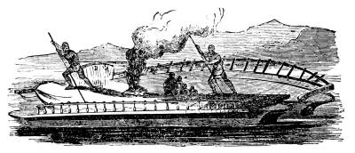 For attaining speed, and thus diminishing the tedium and the risk of an Atlantic voyage, Mr. Wynans, of Baltimore, has invented a cigar-shaped boat, as it is called, though it is pointed at both ends. Various causes have hitherto prevented his final experiment with his boat, but he hopes to be able to[692] make with it an average speed of at least eighteen miles an hour.