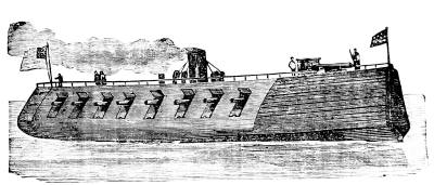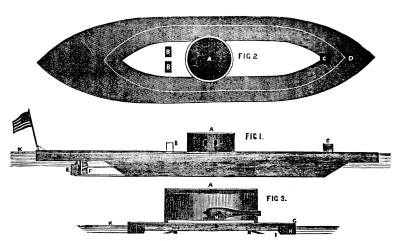 The cuts represent the shape of some of the iron-clads built for service in the western rivers, where the shallowness of the stream made it necessary that the craft should not draw too much water.