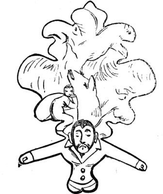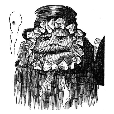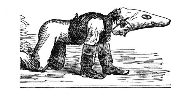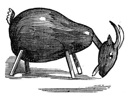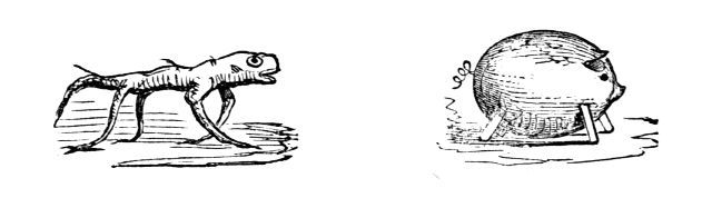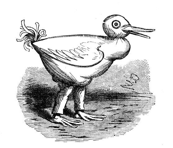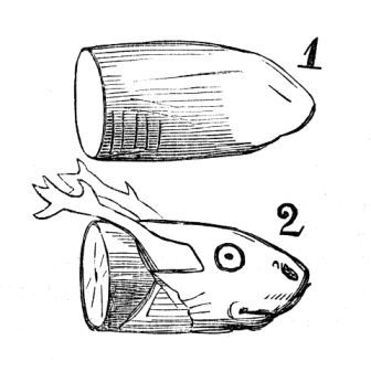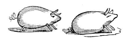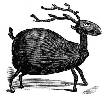 When we arrived at Nix's house all the company had assembled—it consisted of about ten grown people and a dozen children. All were in a chatter over a couple of little objects on the centre-table. The one a pig manufactured out of a lemon, and the other a dragon, or what not, adapted from a piece of some kind of root our friend Nix had picked up in the garden. We alluded to these works of art in our last chapter, and now give a couple of sketches of them. As will be seen, they are very easy of manufacture, and not excessively exciting when made, but they serve to set [Pg 21]people talking. One person told the story of Foote, or some other old wit, who, at a certain dinner-table, after numerous fruitless efforts to cut a pig out of orange-peel, retorted on his friend who was quizzing him on his failure: "Pshaw! you've only made one pig, but (pointing to the mess on the table) I have made a litter." Then some one else discovered a likeness between the dragon and a mutual friend, which produced a roar of laughter. Then a child exclaimed, "Oh! what a little pig!" and some one answered her: "Yes, my dear, it's a pigmy." Then a young lady asked how the eyes were painted, and a young gentleman replied: "With pigment." Whereupon a small boy called out, "Go in lemons!" which was considered rather smart in the small boy, and he was told so, which induced him to be unnecessarily forward and pert for the rest of the evening; but as he never succeeded in making another hit, he gradually simmered down to his normal condition towards the end of the entertainment. One group got into con[Pg 22]versation about the dragon, the dragon led to fabulous animals generally, fabulous animals to antediluvian animals, these to pre-Adamite animals, and so in a few minutes they were found deep in the subject of Creation; whilst the group next to them, owing to some one's having conjectured whether my friend's piece of sculpture could walk, and some one else having suggested that it might be made to do so by means of clock-work or steam, had got on to the subject of machinery, modern improvements, flying-machines, and were away two thousand years off in the future, making a difference of no less than ten thousand years between themselves and the other party. At about this juncture of affairs, we happened to notice a book on the table treating of a certain very interesting animal, the newly discovered African ape, a subject which was attracting a good deal of attention at that time. We took the work in our hand and read on the cover the inscription: "Portrait of the Gorilla." "Nix," we said to our friend, still holding the book in our hand, "if all we hear of this gorilla be true, it must be a most extraordinary animal, although I am rather inclined to be sceptical in the matter; however, I have no right, perhaps, to form an opinion, as I have never looked into the subject; but I'll get you to lend me this book to-morrow. I will take[Pg 23] the greatest care of it, and return it; yes, I will, upon my word of honor. You never knew me fail to return any work you lent me." This we said rather warmly, thinking we detected a somewhat suspicious smile playing round the corner of our friend's mouth. "Oh! yes, certainly," replied he; "you can have it with pleasure—though I think your doubts will vanish when you have looked into it." We did not notice specially that all eyes were upon us. We carelessly opened the volume, and there, by all the spirits ever bought and sold! was a neat little mirror between the covers of the book, and reflected in it our own lovely countenance. Portrait of the Gorilla! eh? This was what the boys would call rather rough, but every one except ourself seemed to think it quite funny. It was some satisfaction, however, to know that every one of the party had been taken in in like manner before our arrival.