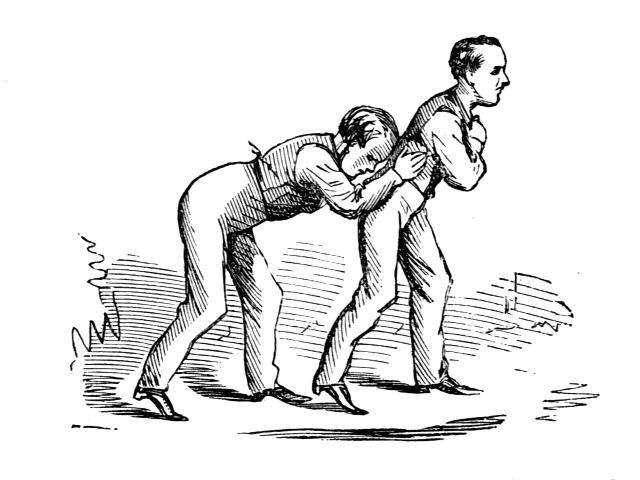 A delightful repast and a cosy chat, followed, perhaps, by a rubber of whist and a glass of wine or whiskey-punch, or mug of ale, according to the condition of the entertainer; then there is a general "unbending of the bow," and no one is troubled about his dignity. We have seen, ourselves, in England, in a stately old castle, a party of lords and ladies—for we, like the boy who knew what good victuals were, having been from home several times—even we have seen good company—we say that we have seen a party of lords and ladies, knights and dames of high degree, and of mature years, romping and frolicking together, like a lot of children, playing Hunt the Slipper, Puss in the Corner, and Blindman's Buff, without the remotest idea that they had such a thing as dignity to take care of; and no one seemed to have the slightest fear that any one of the party could by any possibility do anything that would offend or mortify any one else. The fact is, gentlemen or gentlewomen can do anything; all depends on the way of doing it. If you are a snob, for heaven's sake don't be playful; keep a stiff upper lip and look grave; it is your only safety.