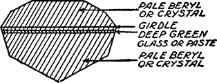 It will be seen at once that we have here a very easily applied test and one that requires no costly apparatus. It is, furthermore, a sure test, after a little practice. For example, if one has something that looks like a fine emerald, but that may be glass, all one need to do is to expose it in the sun, as above indicated. If real emerald, double images will be had (very close together, because emerald is but feebly doubly refracting). If glass, the images on the card will be single.[12]