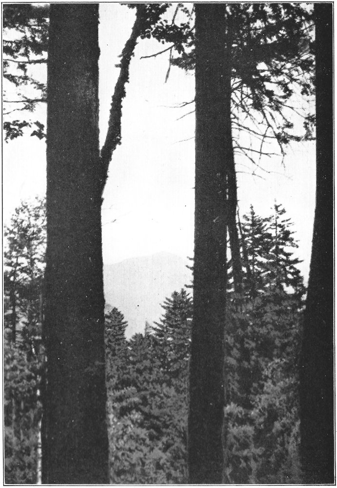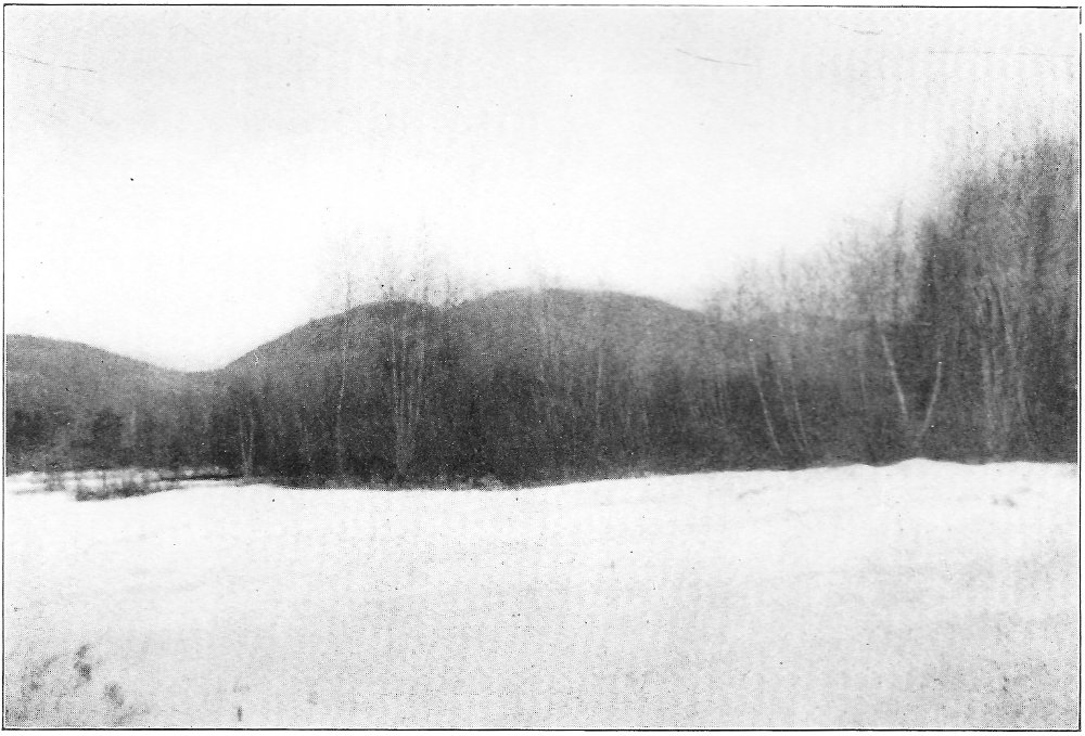 My homeward path followed the crest of the great eastern ridge of Chocorua as it descends towards the basin of Chocorua ponds. The ridge is narrow and mainly open, save for a few stunted spruces. In every direction far-reaching and beautiful views charmed me and tempted me to linger. From the last of the open ledges, the top of what is called Bald Mountain, I saw the sun set just behind the peak. Then with quickened pace I entered the forest and ran through the gathering gloom down the rough path to the pastures a mile below.