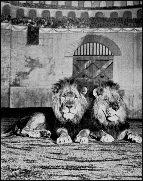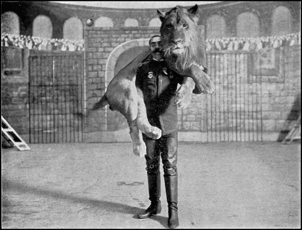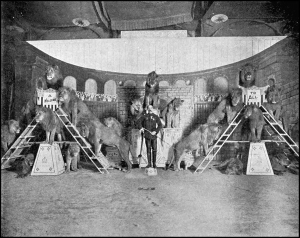 217 But I am prouder still of a lion-trainer who is with me now, Captain Jack Bonavita, who has trained no less than twenty-seven grown lions to perform in the arena at the same time. That this has been the work of years it is hardly necessary to state; but the patience, courage, judgment, and terrible nerve-strain necessary to reach this climax no one can ever realize except those who have watched him carefully week after week, month after month, and year after year.