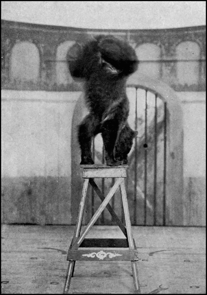This is easy enough at rehearsal, but in the performance it is another matter. The animal must be put through his paces day after day, or he will expect to take it easy all the time. A good trainer will always try, when possible, to let the animal have his play out before urging him to perform; but sometimes this play will go on until the audience becomes impatient, and then comes the risk to the trainer. The animal is comfortable and enjoying himself,239 and to be forced to get up on a pedestal and do other things in the middle of it must naturally be irritating and annoying, and the animal generally vents this annoyance and irritability on the one who forces him to act. In some cases he will not be forced, and then more trouble still arises for the trainer.