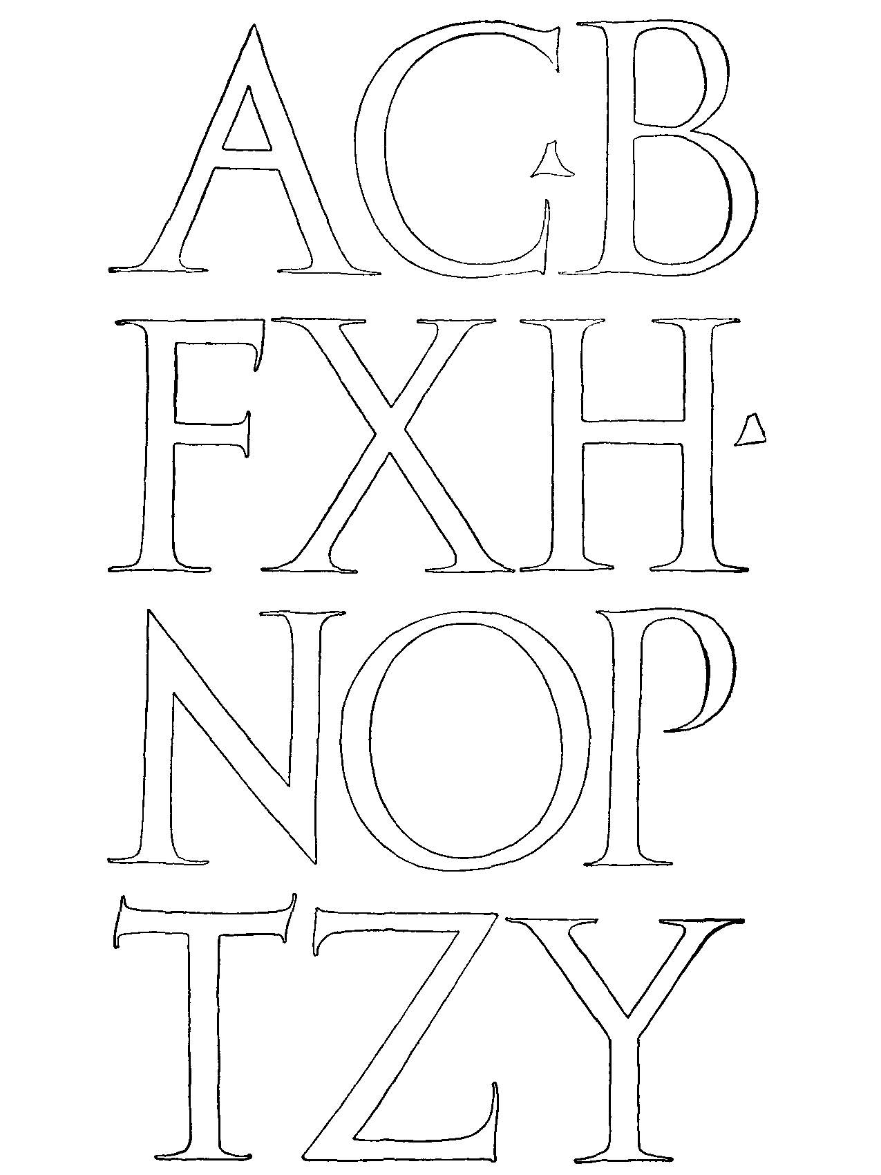 34 Italian Renaissance Capitals. Redrawn from rubbings of inscriptions in Santa Croce, Florence. F. C. B.