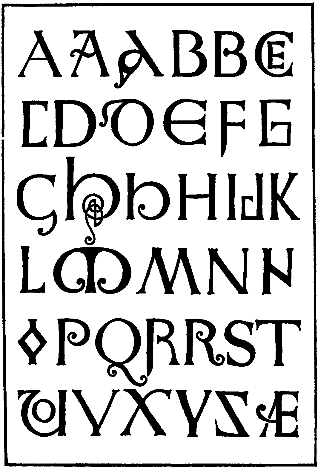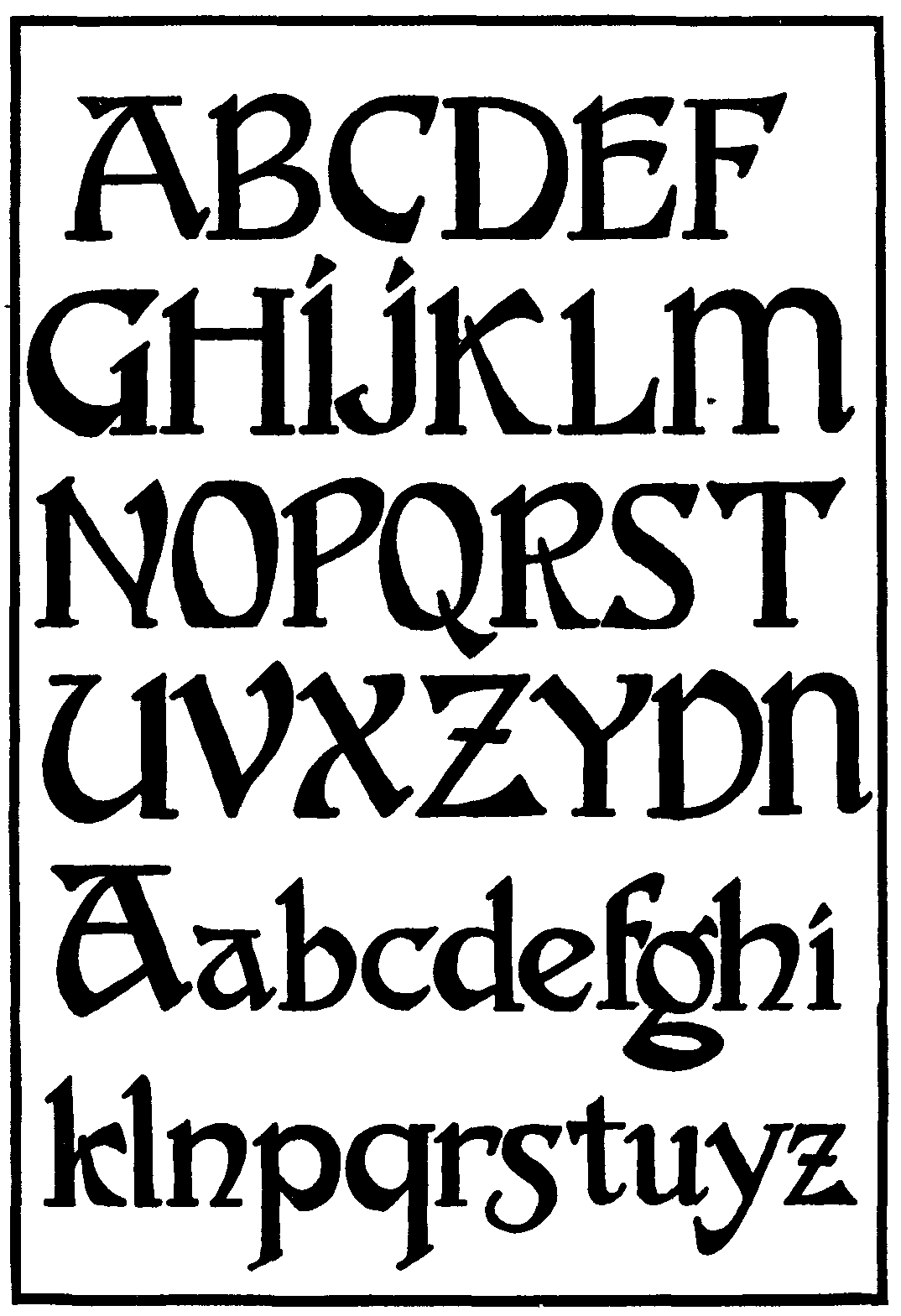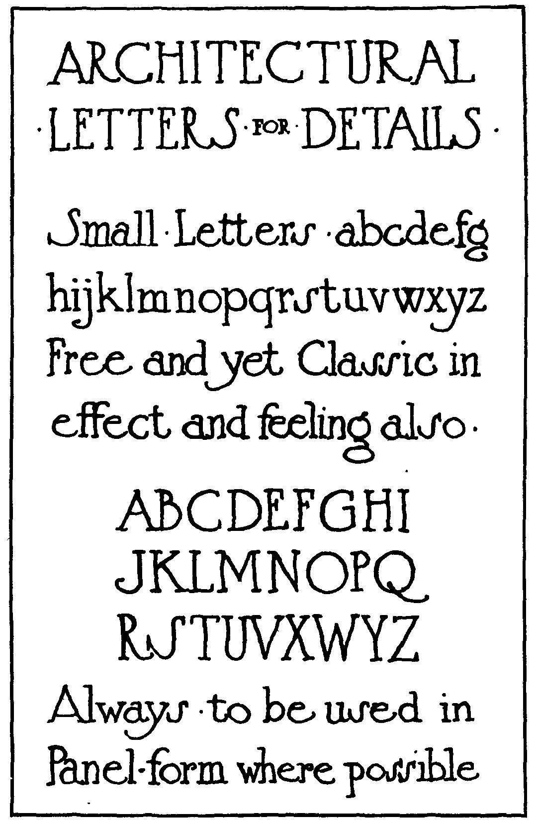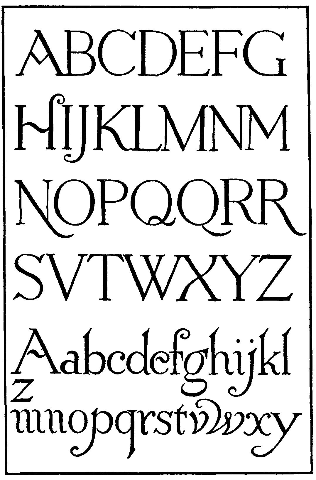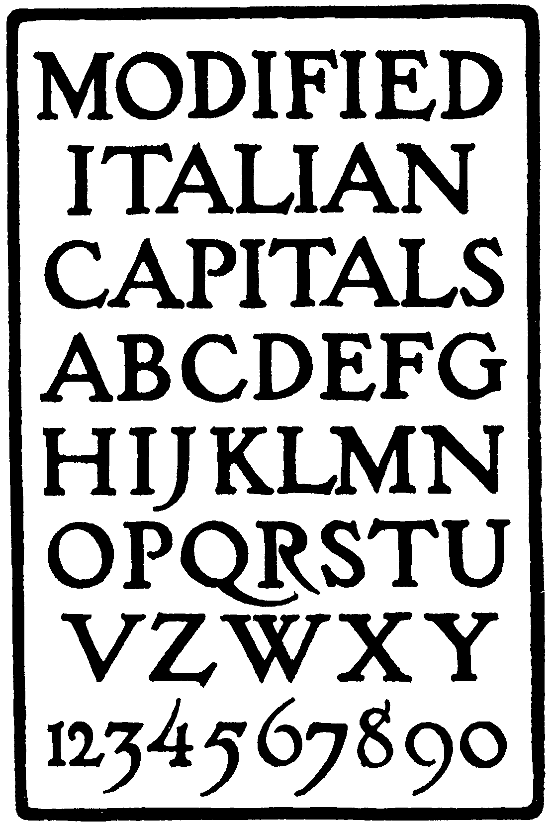 The alphabets illustrated, while primarily intended to exhibit the letter shapes, have in most cases been so arranged as to show also how the letters compose into words, except in those instances where they are intended to be used only as initials. The application of classic and medieval letters to modern usages has been, as far as possible, suggested by showing modern designs in which similar forms are employed.