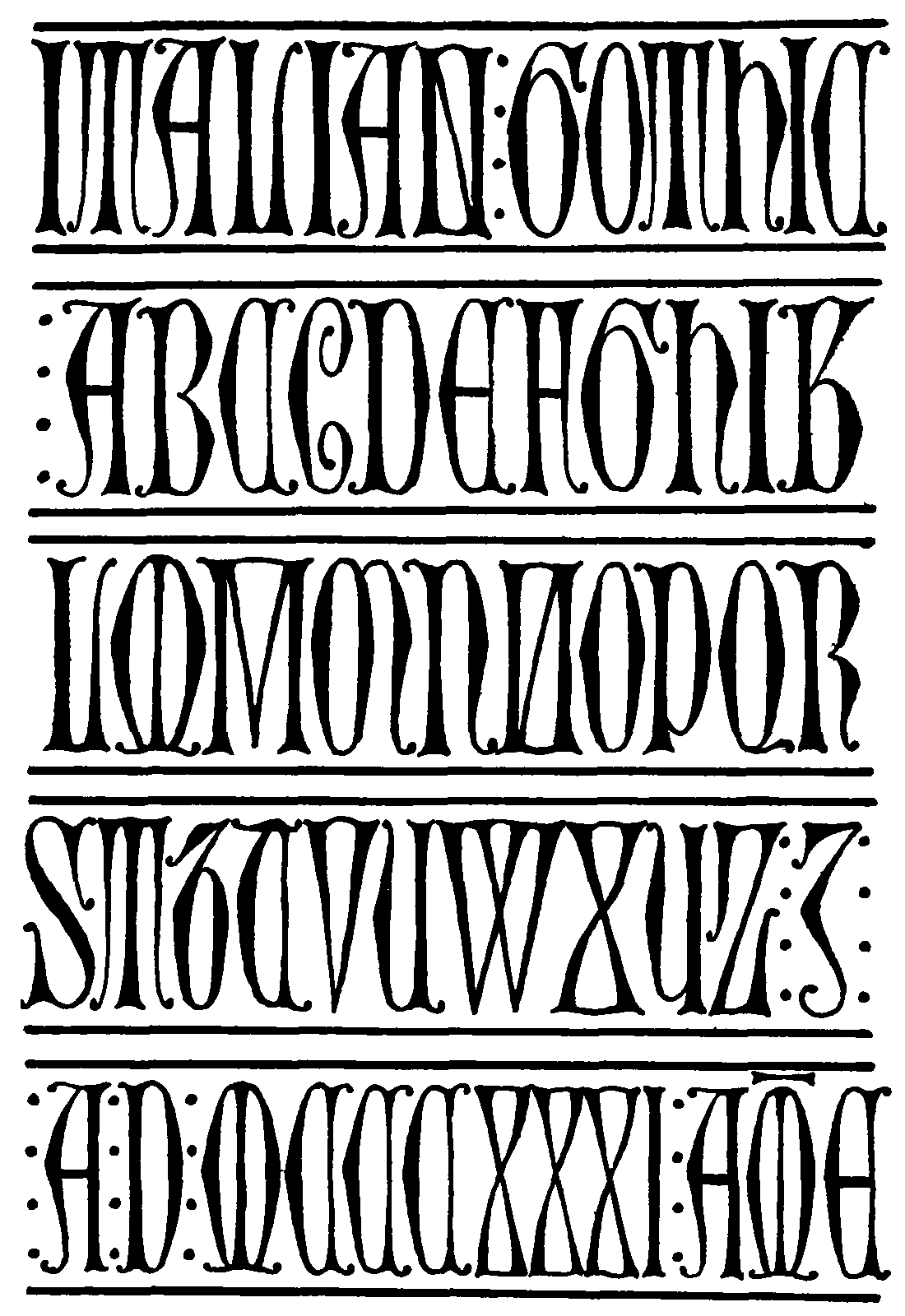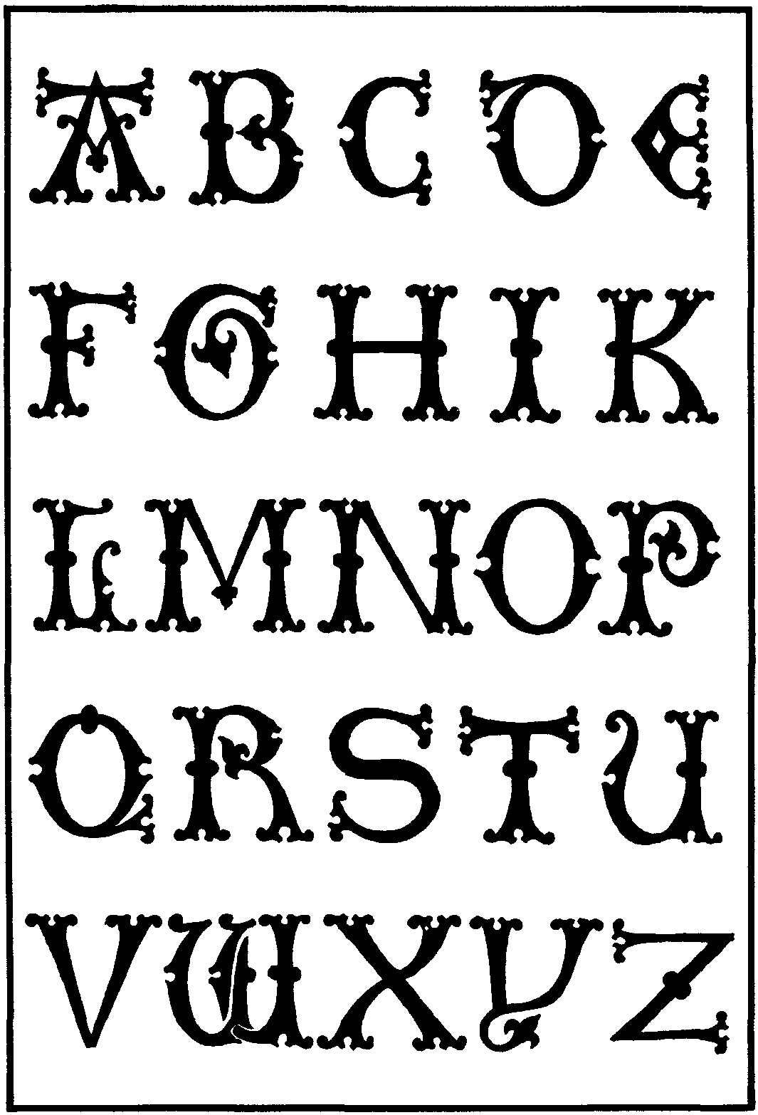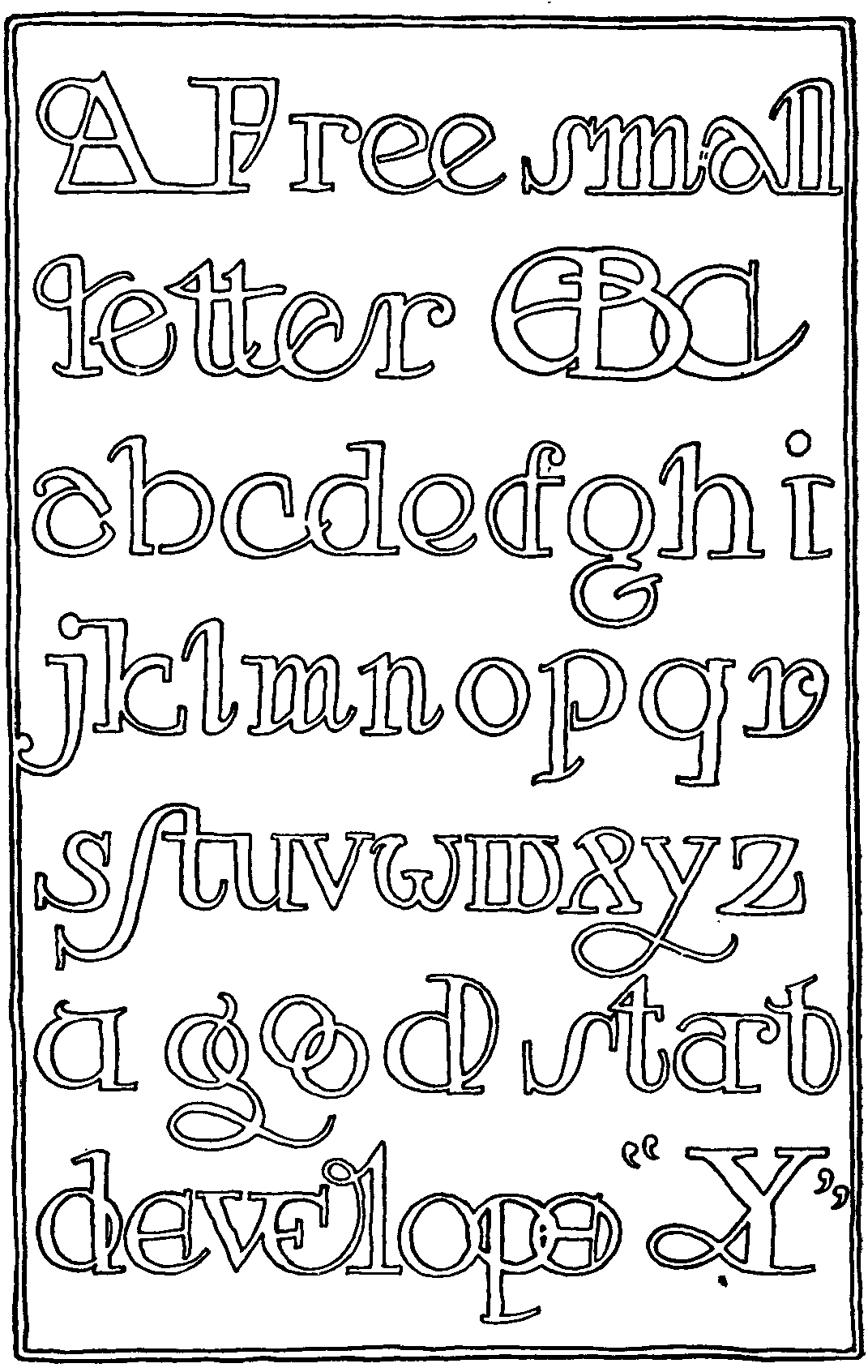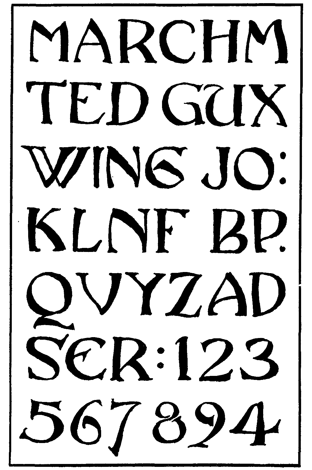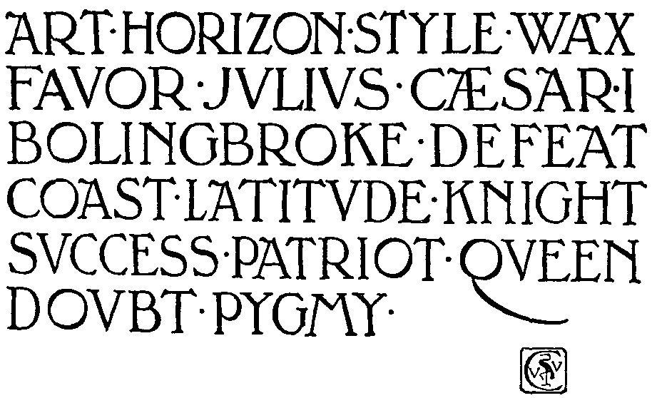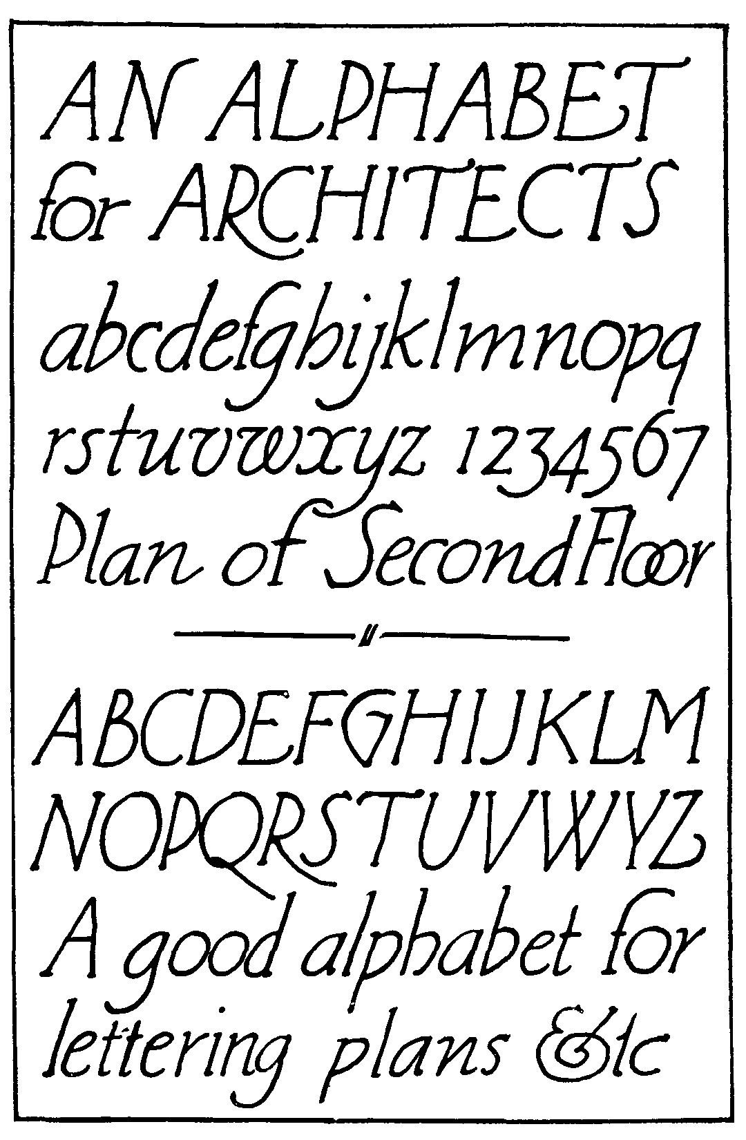 The alphabets illustrated, while primarily intended to exhibit the letter shapes, have in most cases been so arranged as to show also how the letters compose into words, except in those instances where they are intended to be used only as initials. The application of classic and medieval letters to modern usages has been, as far as possible, suggested by showing modern designs in which similar forms are employed.