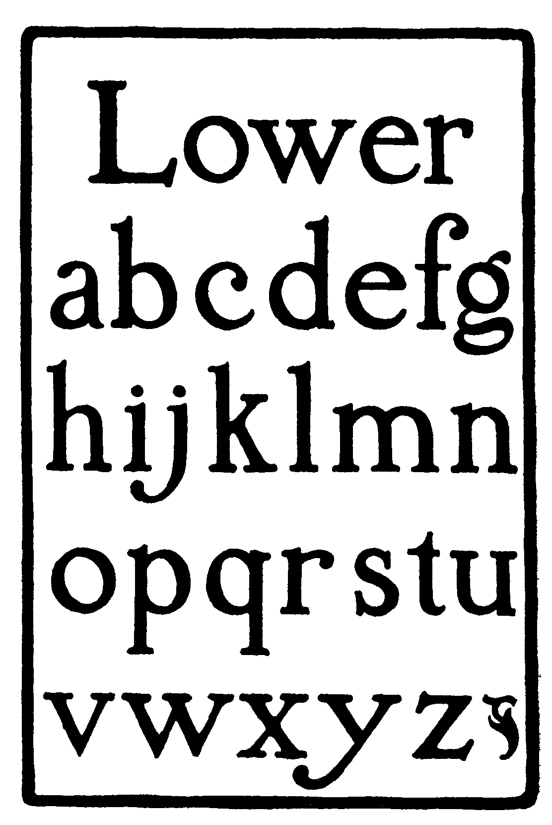 Small letters, (see Minuscule, also Modern Roman, Gothic, Script and Italic).