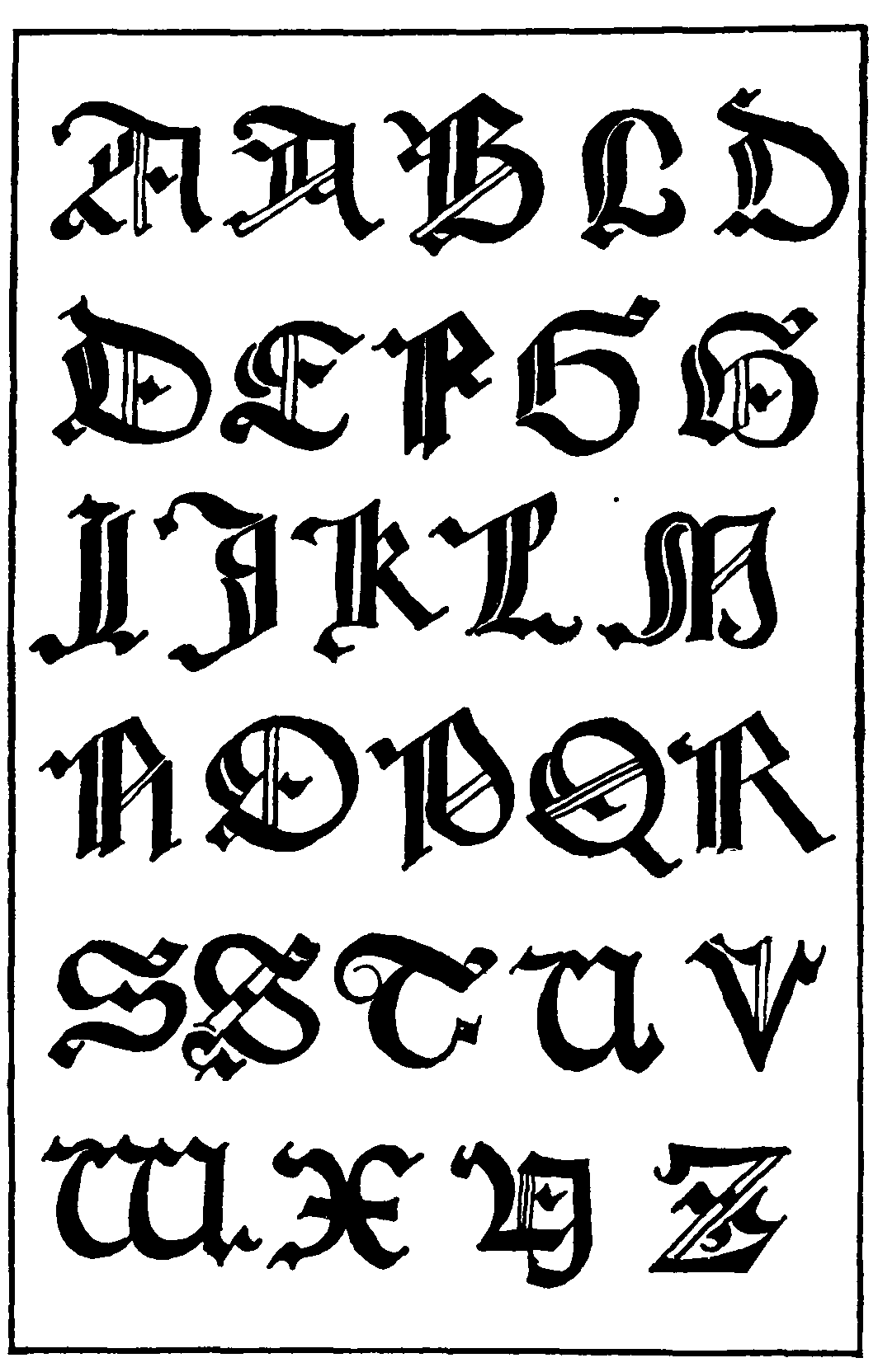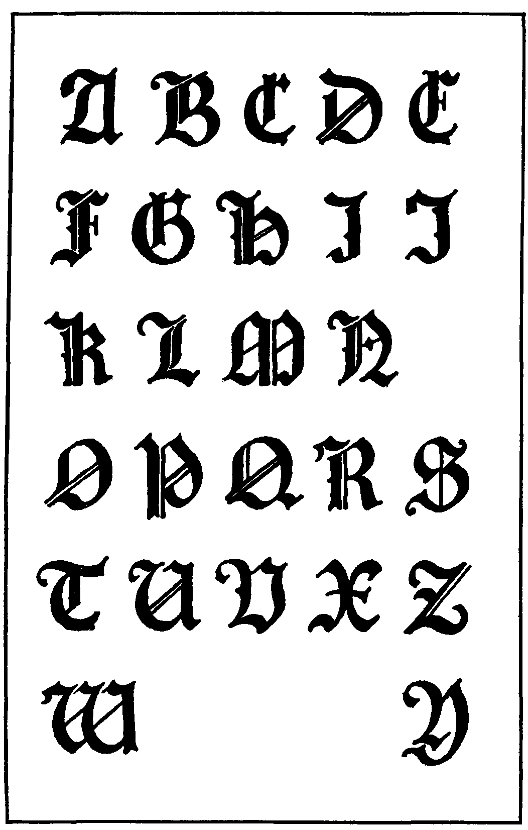 37 and 38 German Renaissance Capitals. By Albrecht Dürer. Adapted from 'Underweyssung der messung, mit dem zirckel, ũn richtscheyt, in Linien, etc.' (Nuremberg, 1525)