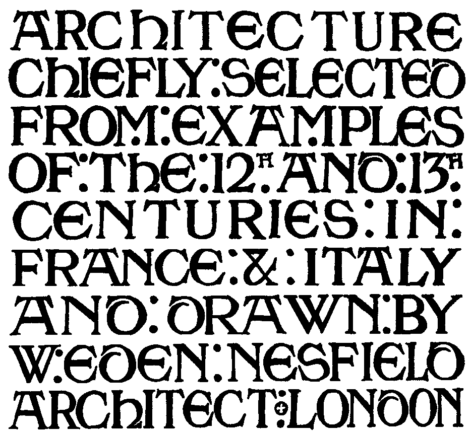 45 Title in Early English Capitals. By W. Eden Nesfield. From 'Specimens of Medieval Architecture.' (Day & Sons, London, 1862)